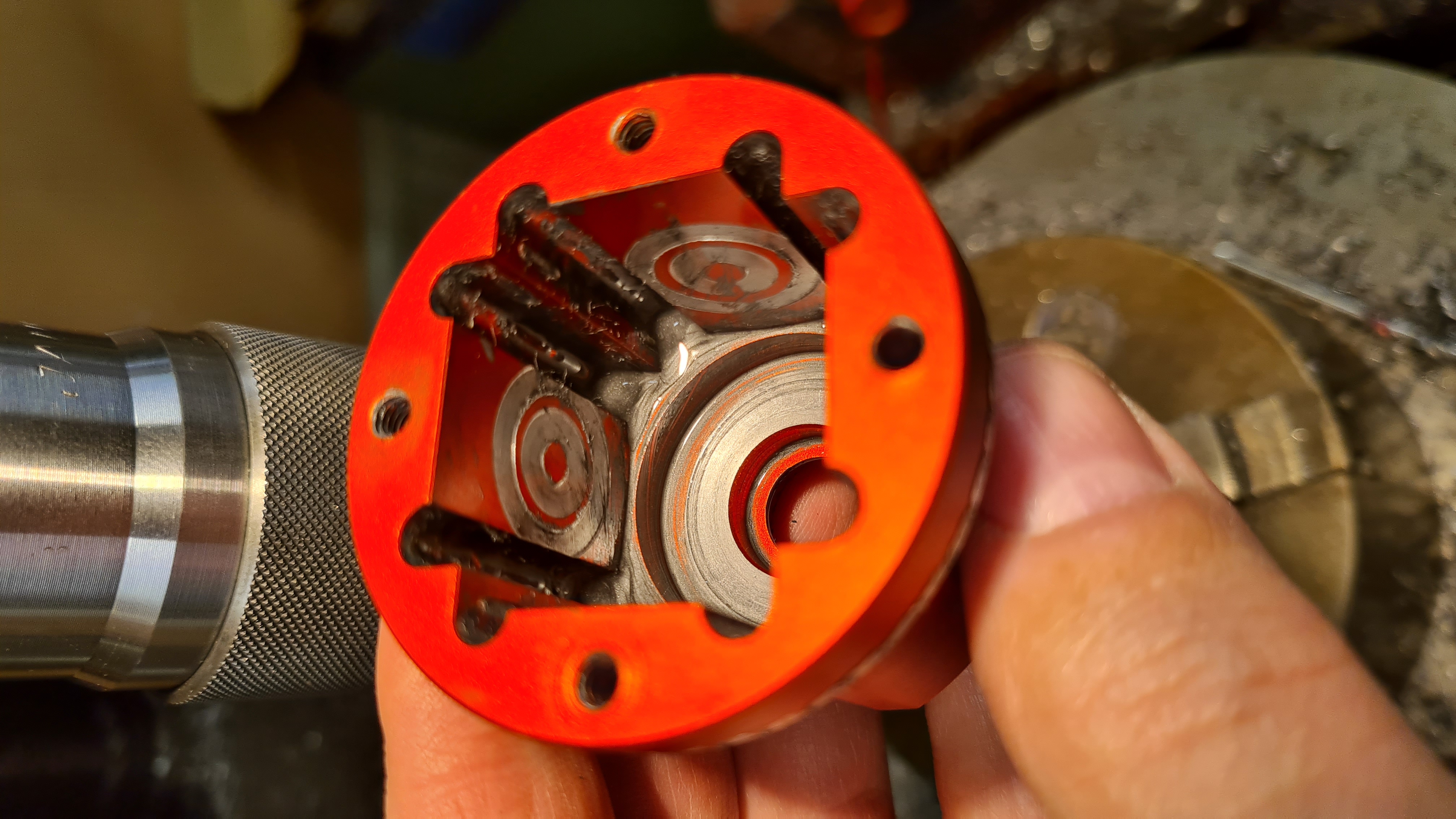 Eftersom den gamla reparationen inte kunde tas bort, var jag tvungen att kunna spänna ordentligt, och kåpans innerform stämmer inte 100% med centrum på hålet tyvärr.