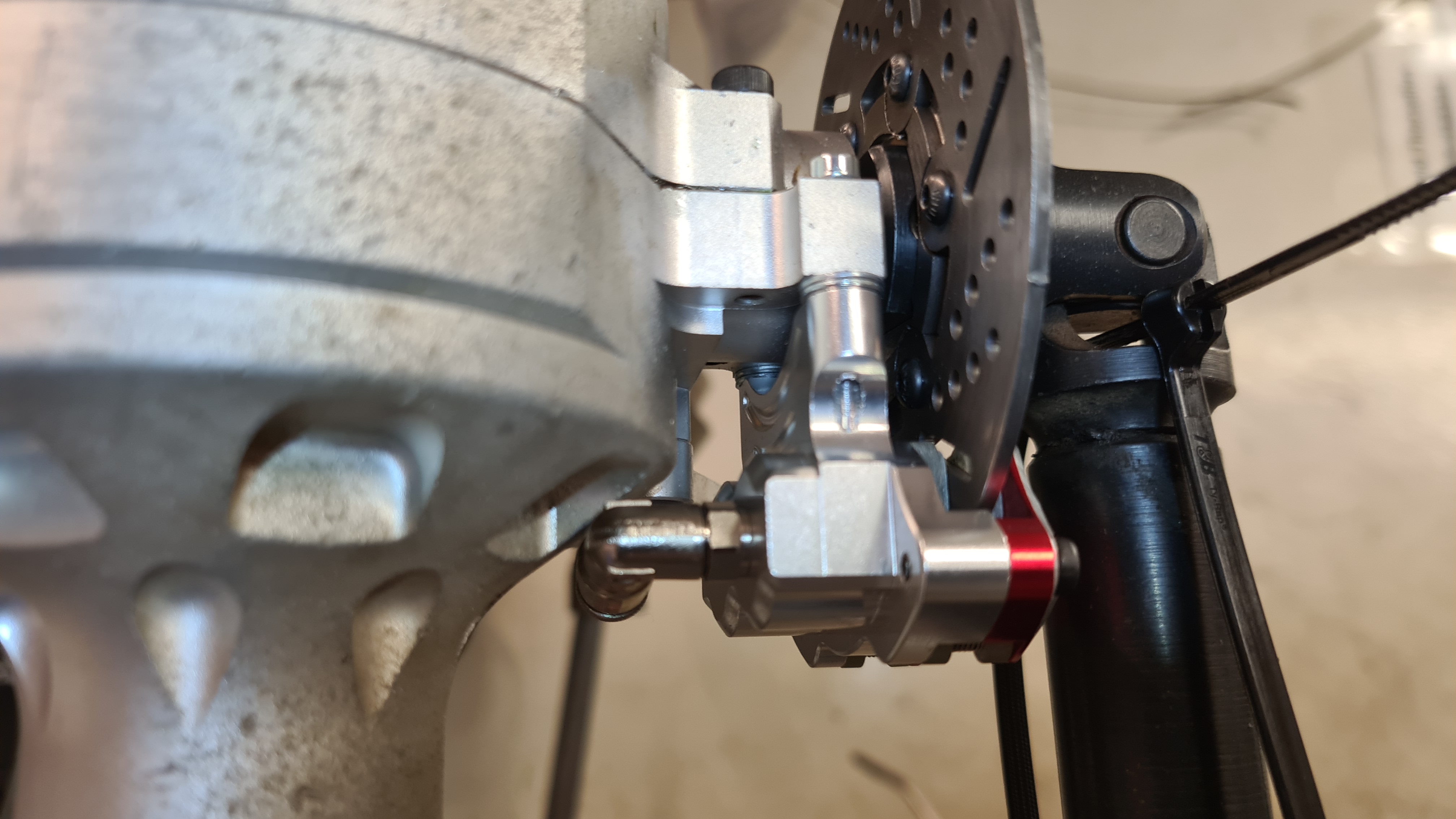 Nu har ju givetvis PrimalRc valt en helt egen hålbild för bromsoken, jämfört med HPI Bajan, så det är ju inte bolt-on precis.