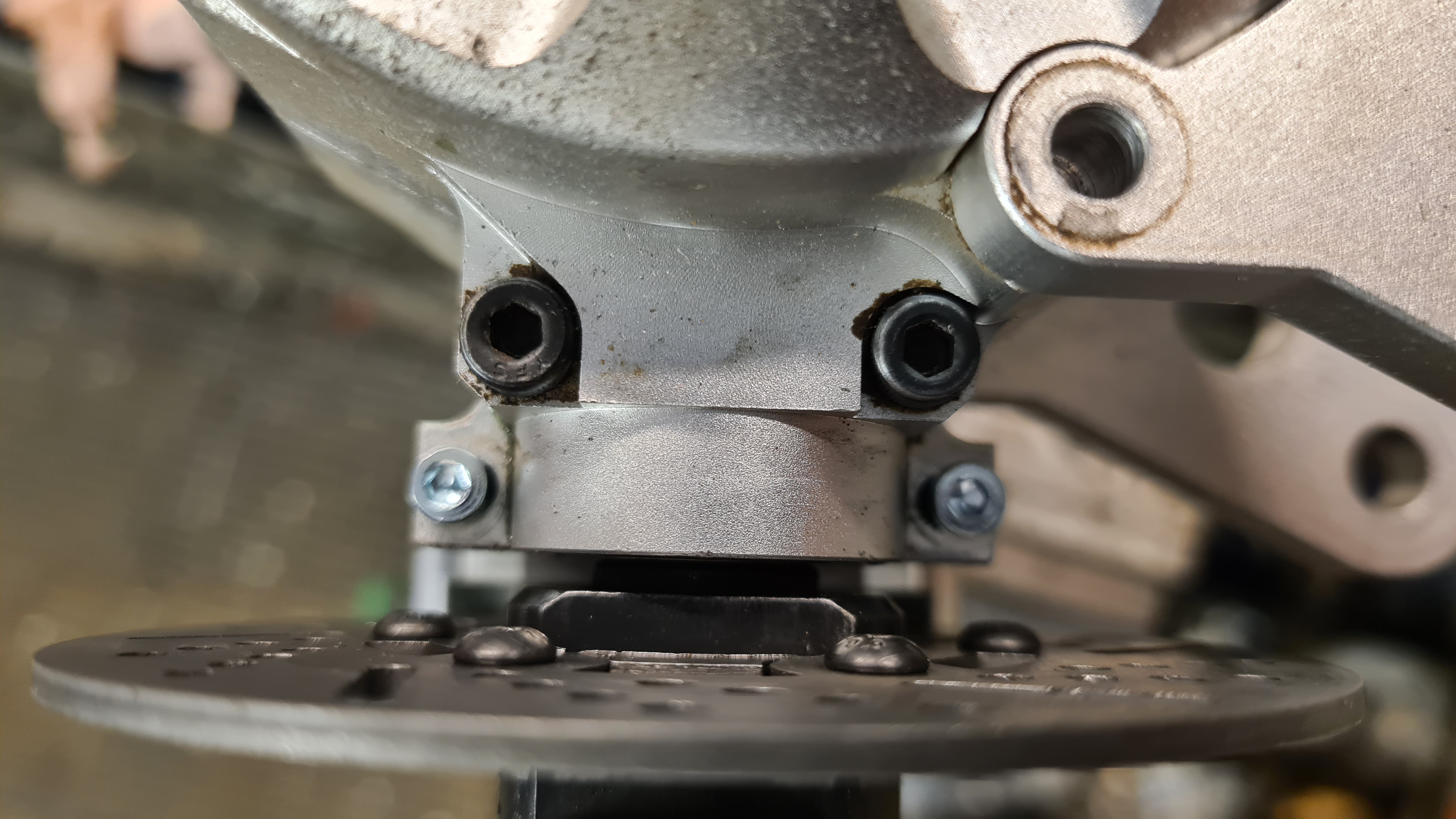Borrade upp till M5 och modifierade huset för att kunna låsa lite längre skruvar med låsmuttrar.