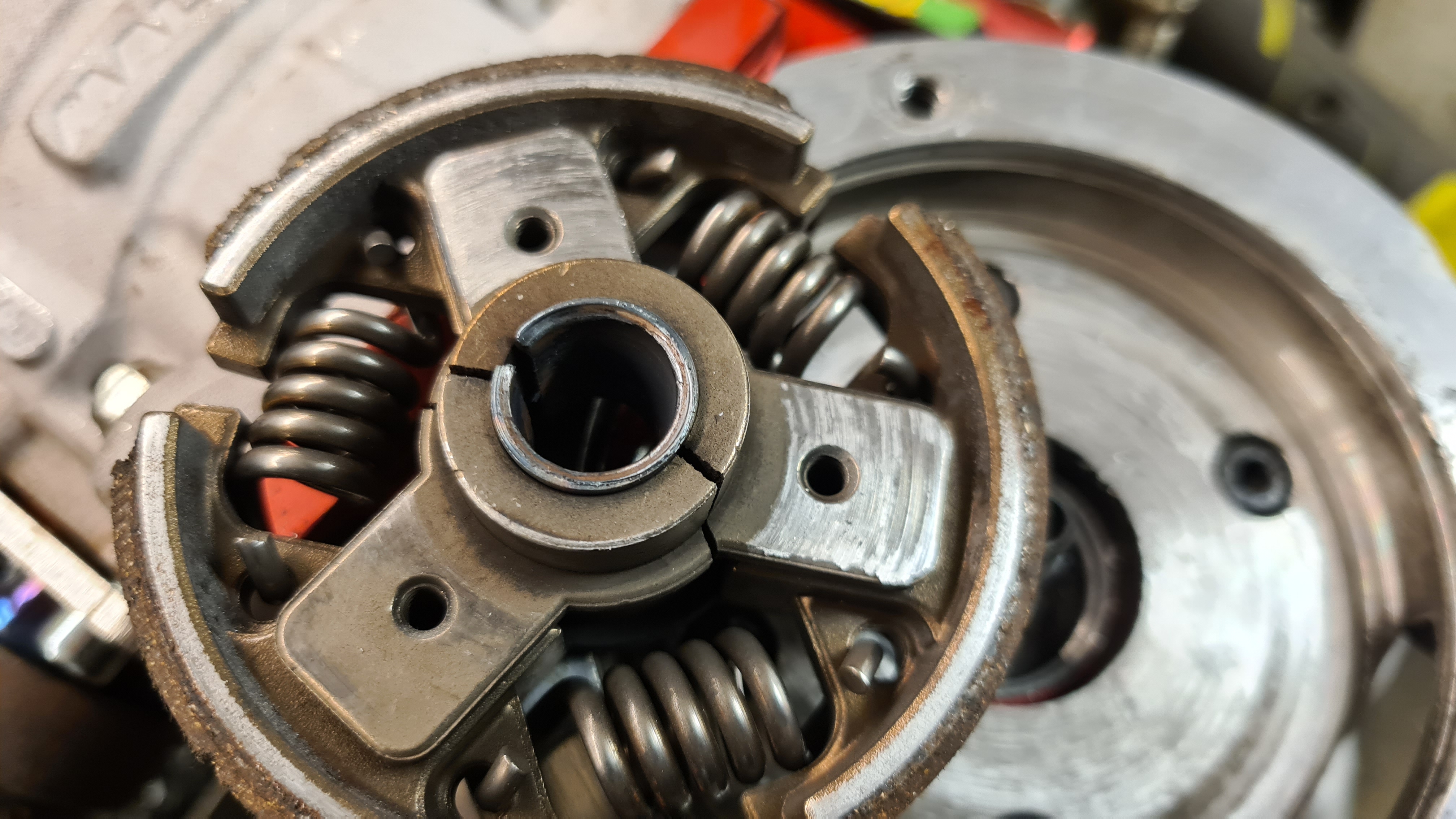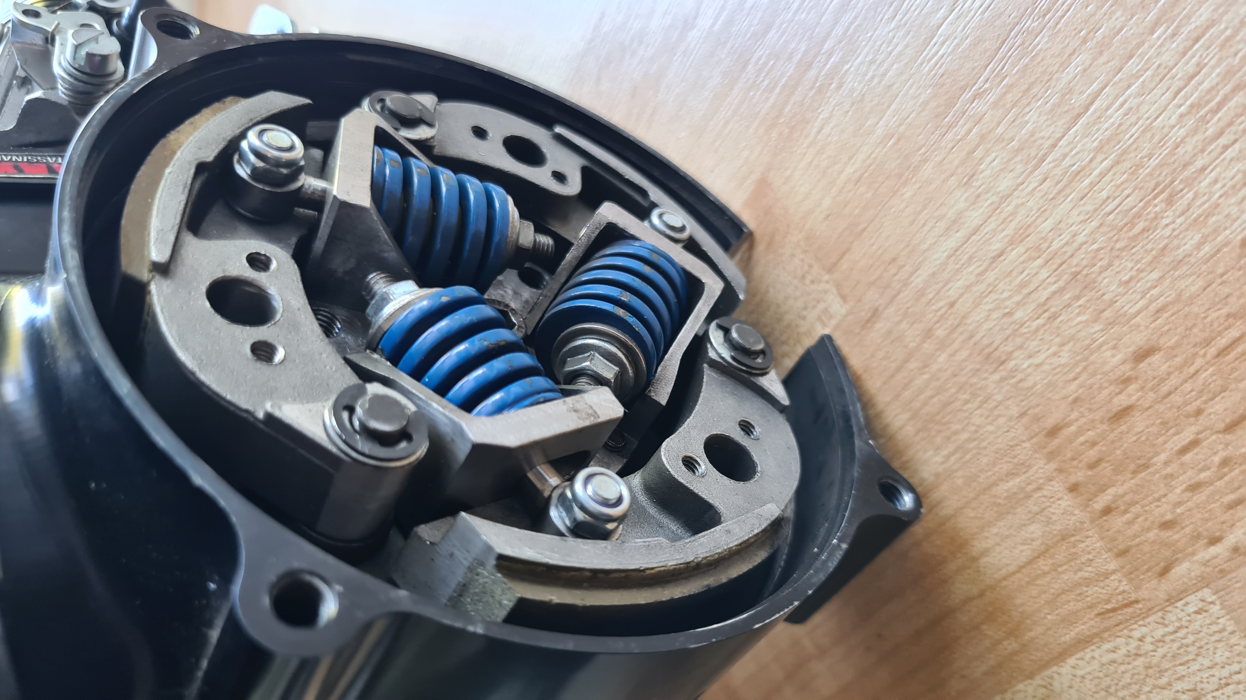 Problemet är att när man har bra fart på bilen, och tvärnitar, är ju kopplingen fortfarande låst med vevaxeln på motorn, och börjar den då slira på veven, lossar det till slut.