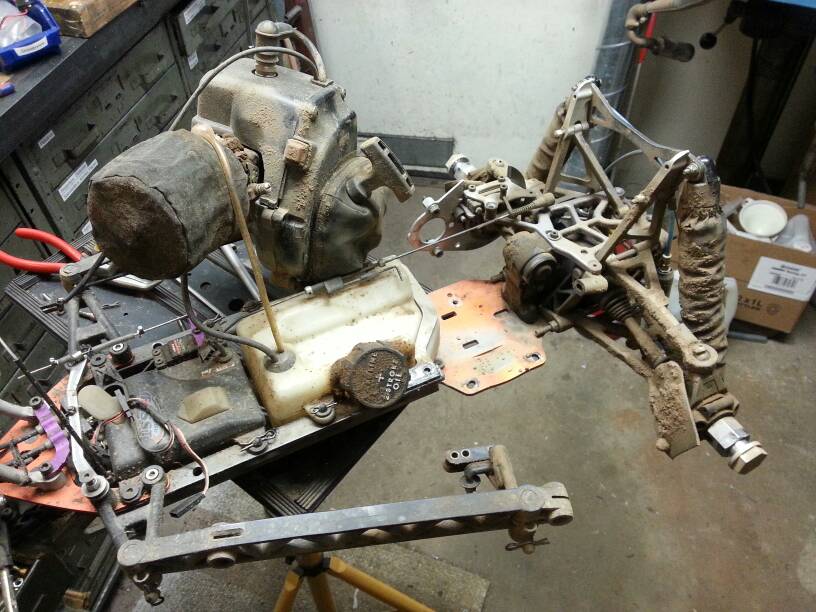 Den var i behov av lite ompyssling då en sidobalk gått av och de två skruvarna till bakre krysstaget gått av uppe mot taket.
