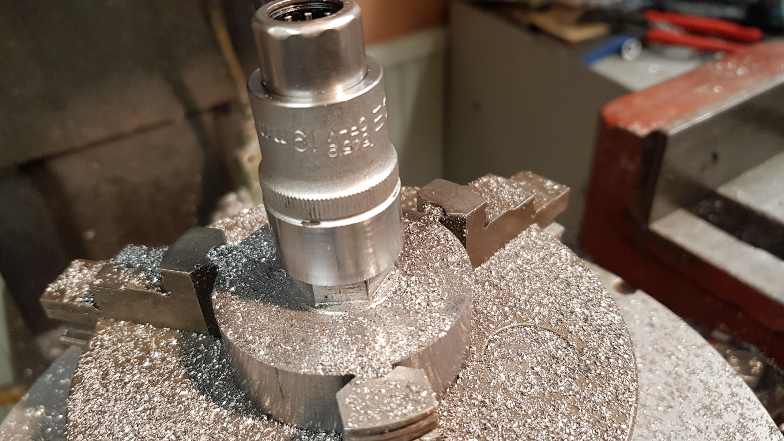 Svarvade till ena änden av det som ska sitta på svänghjulet ikväll.
