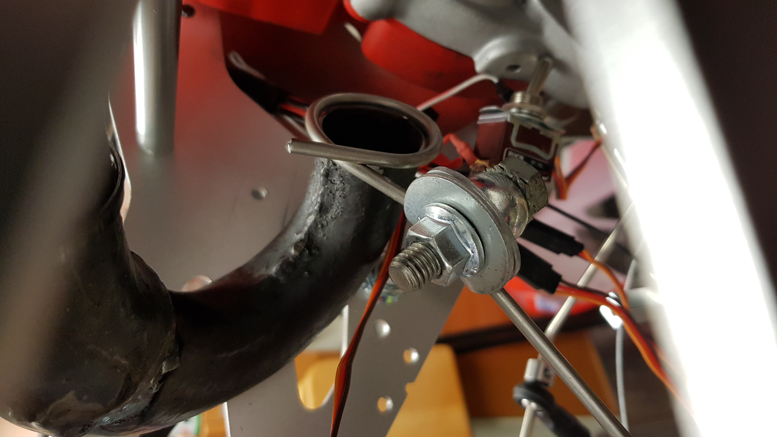 Till hjälp att rikta rördelarna gjorde jag ett simpelt fäste till en kraftig järntråd.