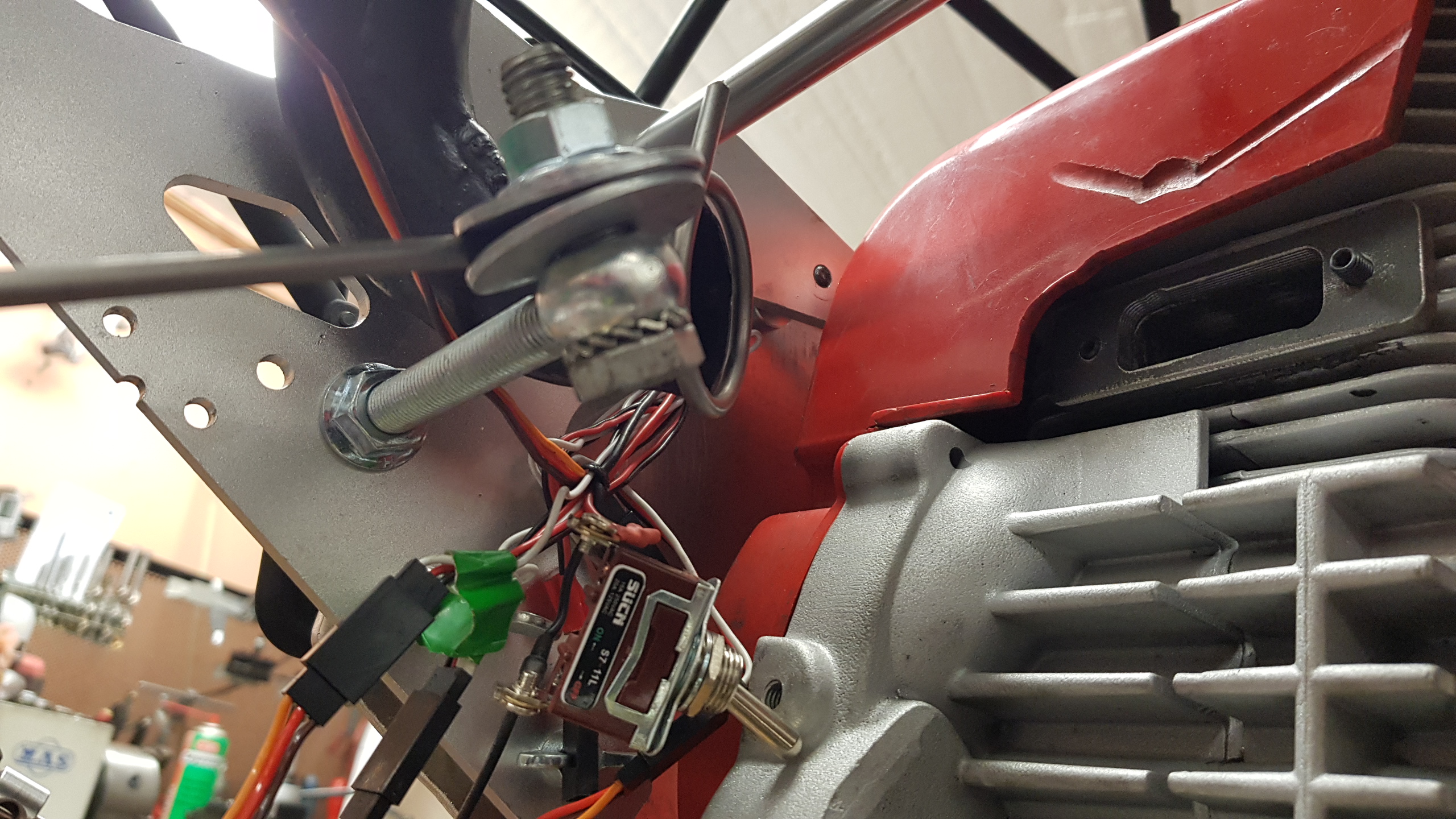 Dragstarten kommer från en CF Moto 500cc och väger runt 1.5kg när den är klar, och den extra vikten klarar jag mig utan när den ska lyftas.