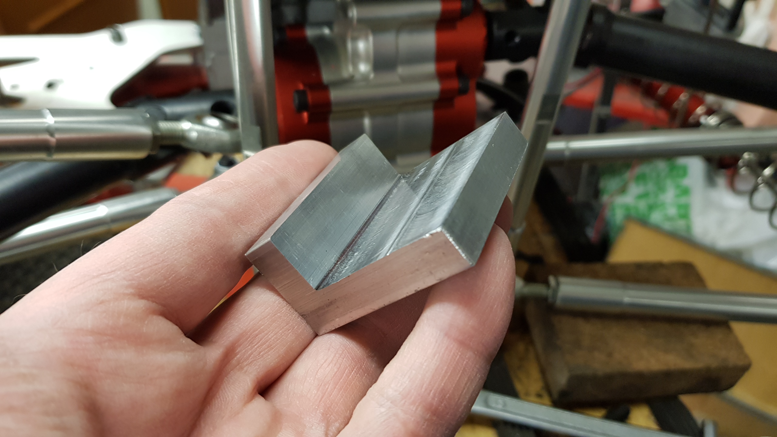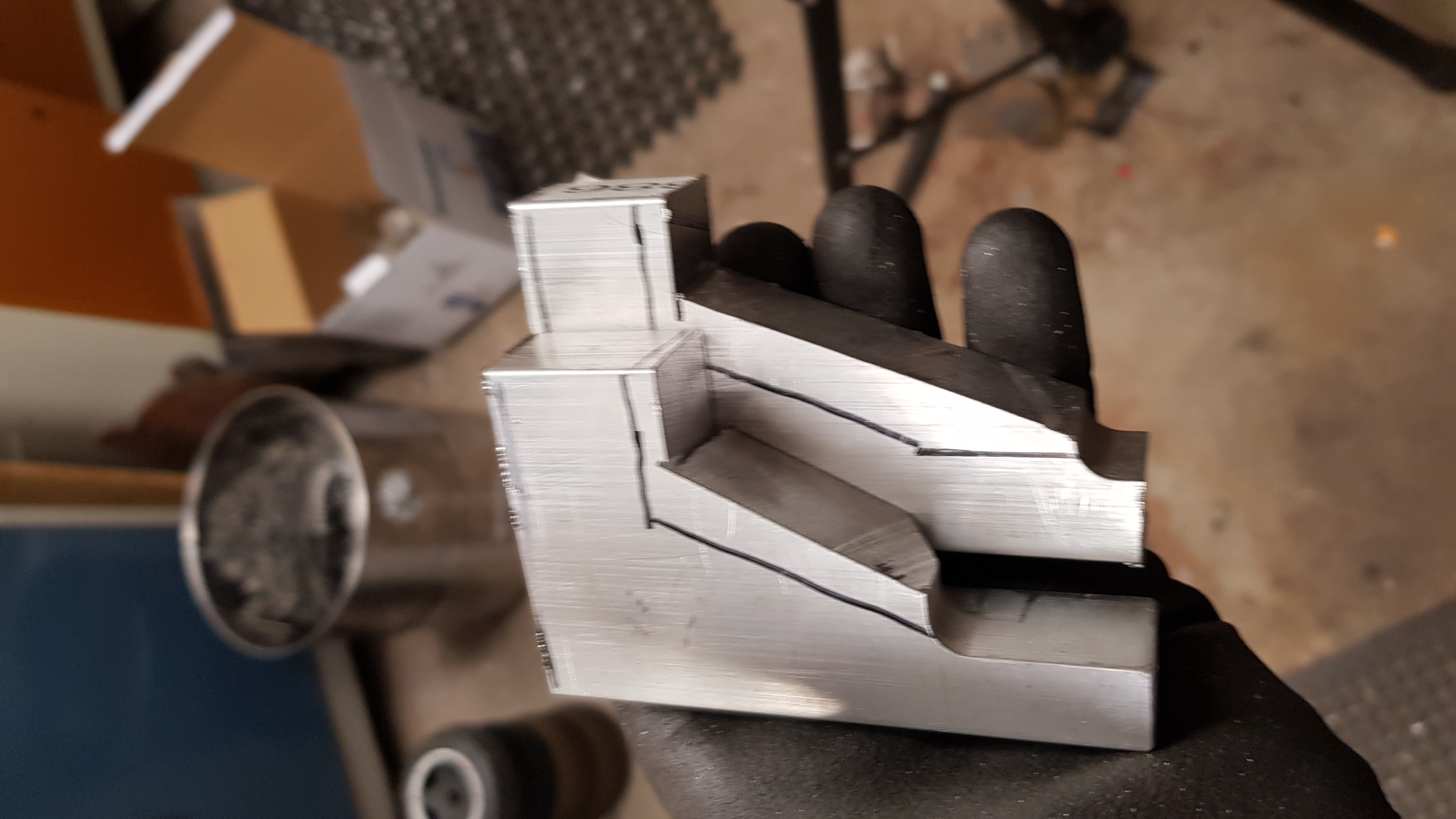 Hittade ett ämne stort nog för att tillverka stödfästet till fördelningslådan i ett stycke, och la ungefär 15h på den, ända fram tills jag fräste av en sida som skulle varit kvar.
