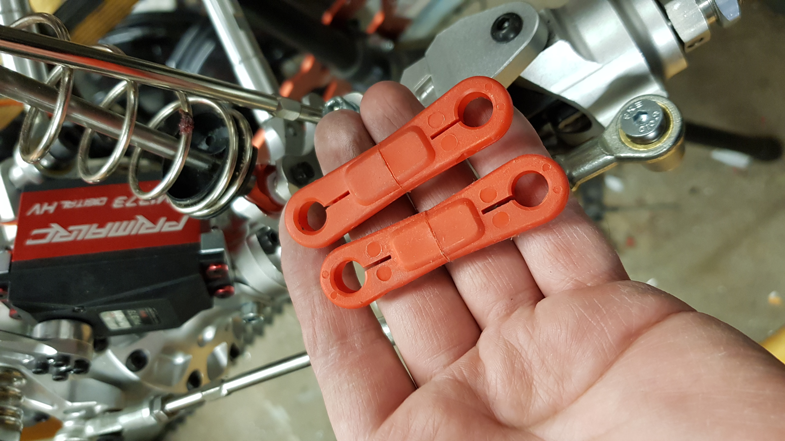Blir det inte en hel det glapp med en sån setup? Känns som lite tvärt om mot vad jag försöker åstadkomma med de bilar jag har dubbel i. Dvs att all rörelse ska ske i servoräddaren och att rätt intrimmade ska servona dela 50/50 på alla belastningar både i drag och vid smällar.