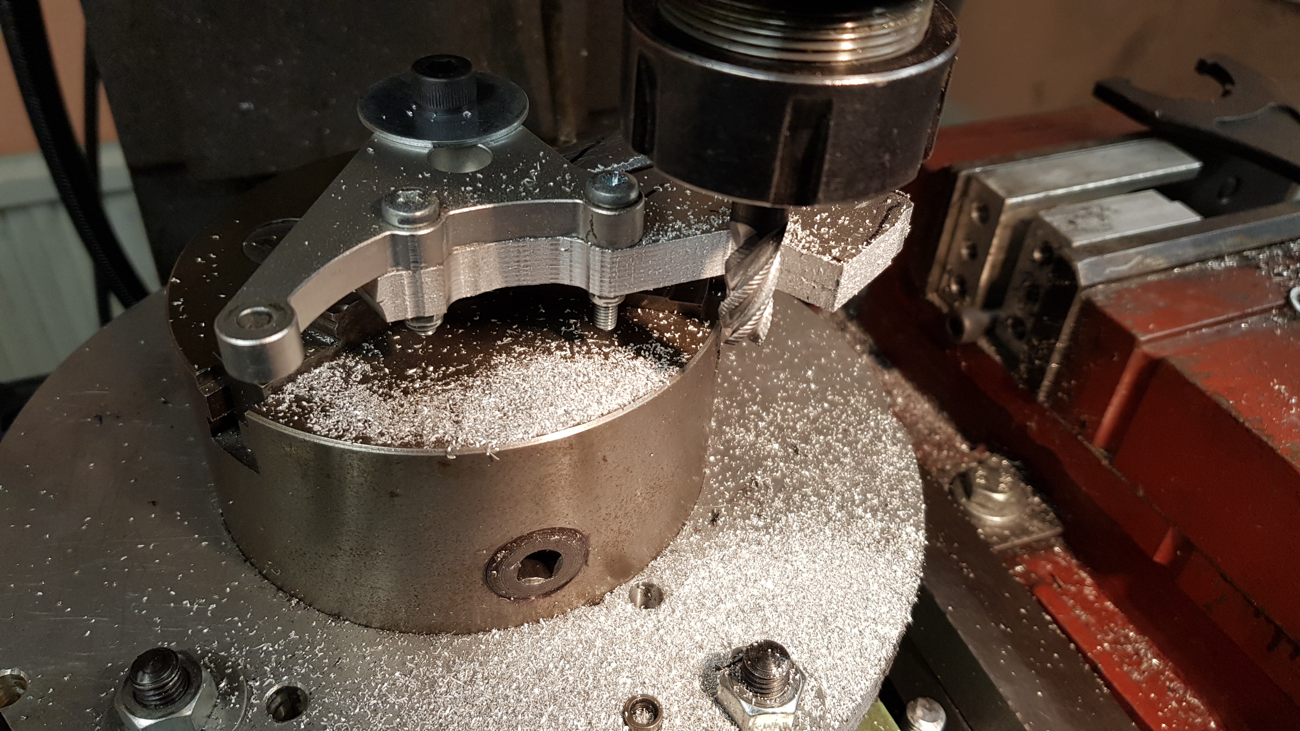 Har löst det idag med en hållare för två nylonskor och lite annat trams. Ville först bara göra en aluminiumarm med ett spår i, men insåg mitt i att det inte skulle fungera.