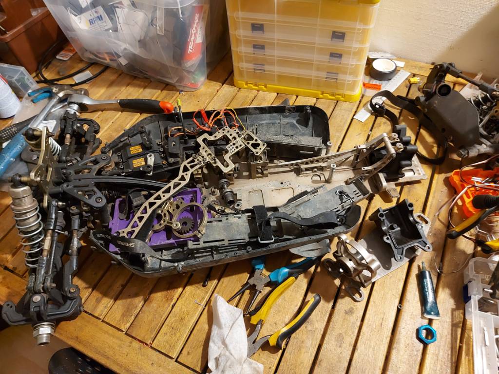 Snodde en massa delar från denna bil till xs5. Inkl 2 diffar, motor och esc. Då kan jag nu lika gärna bygga om denna från scratch...