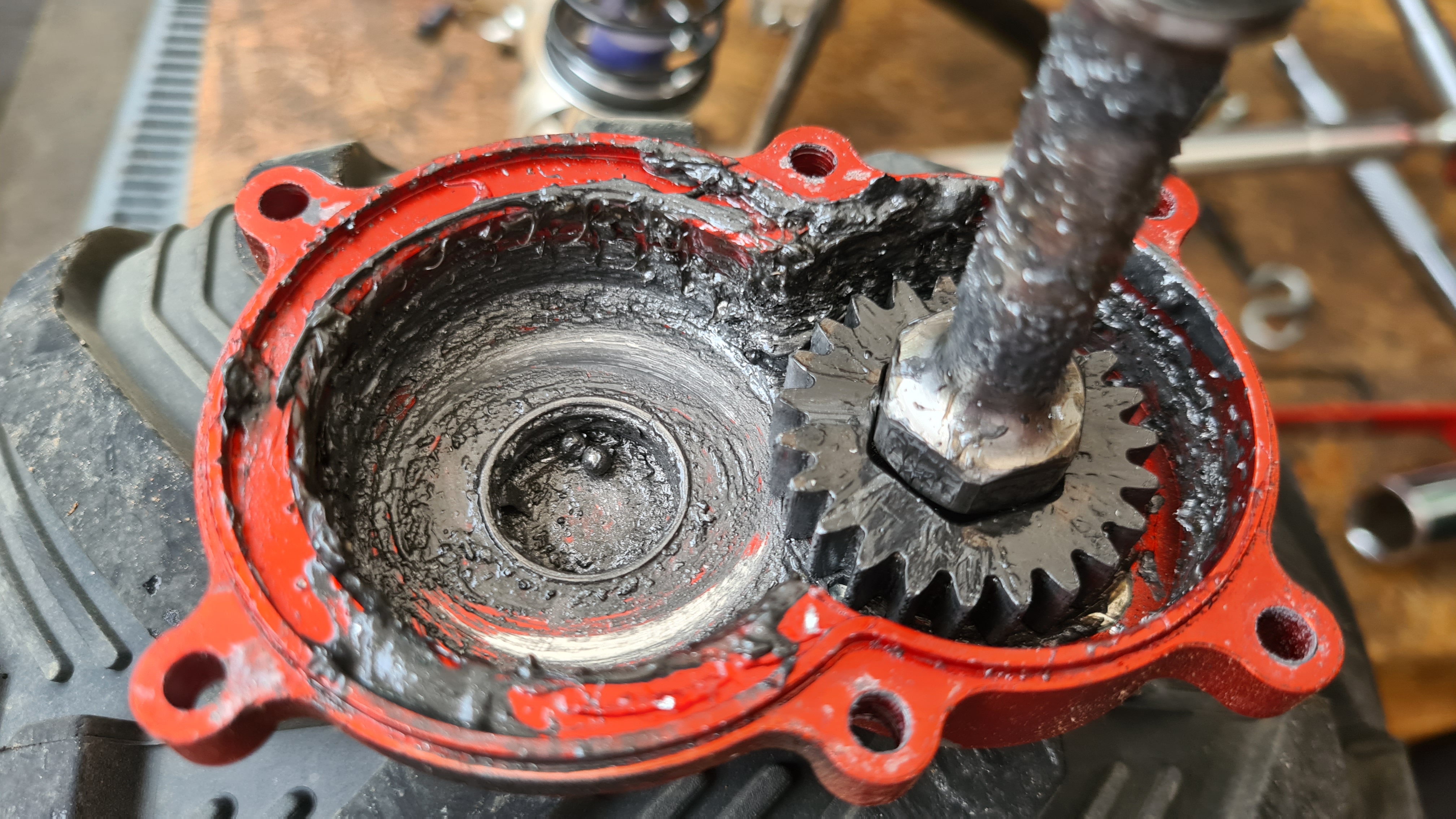 Skön känsla när man ser smörjfett på utsidan av gaveln till växellådan och tänker