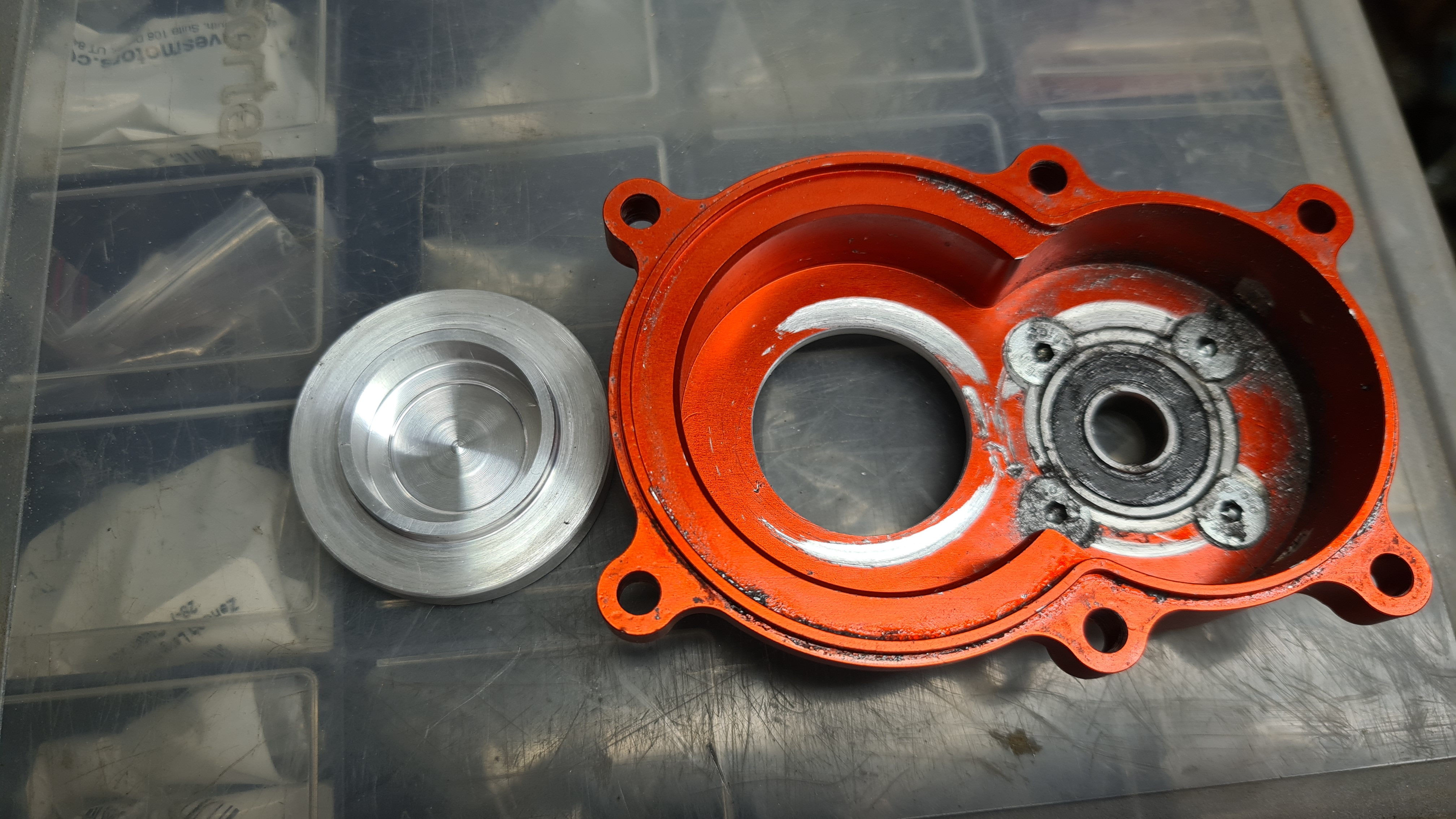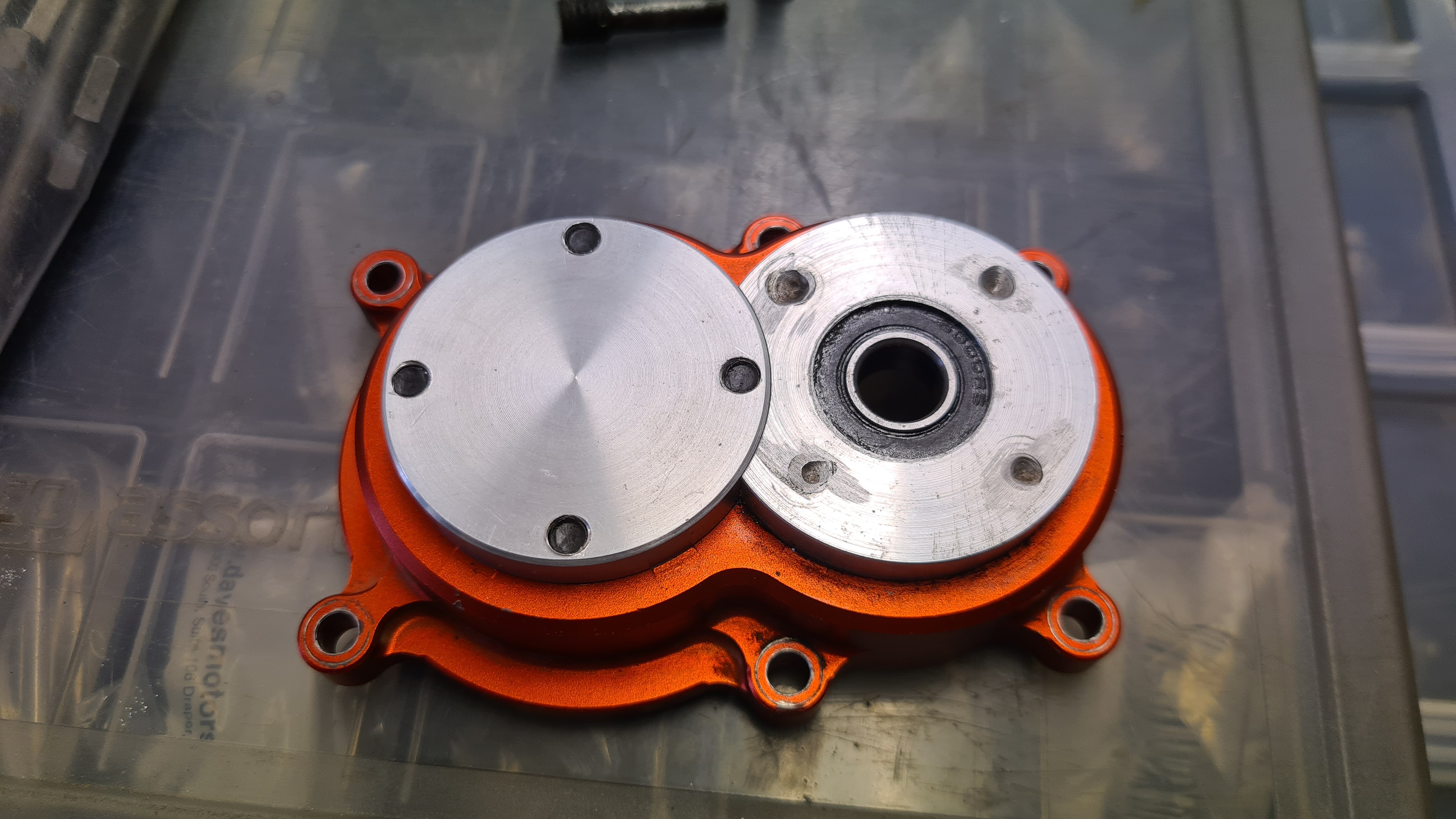 Eftersom den gamla reparationen inte kunde tas bort, var jag tvungen att kunna spänna ordentligt, och kåpans innerform stämmer inte 100% med centrum på hålet tyvärr.