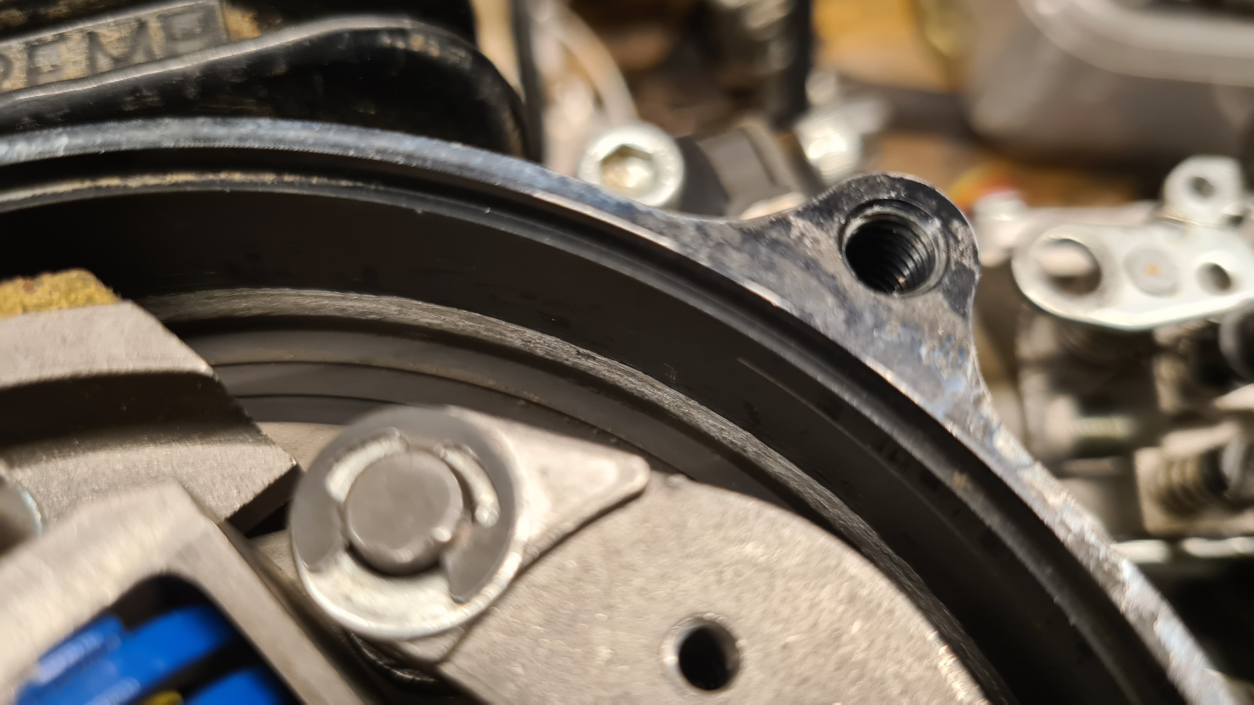 När jag plockat isär och inspekterat, visar det sig att kopplingsklockan tar i kopplingskåpan på motorn.