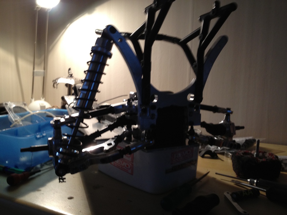 Mer bilder under återuppbyggnaden.. Dock än så länge på alu chassit men det flyttas över på kolfiber chassi när allt stämmer och fungerar som det ska..