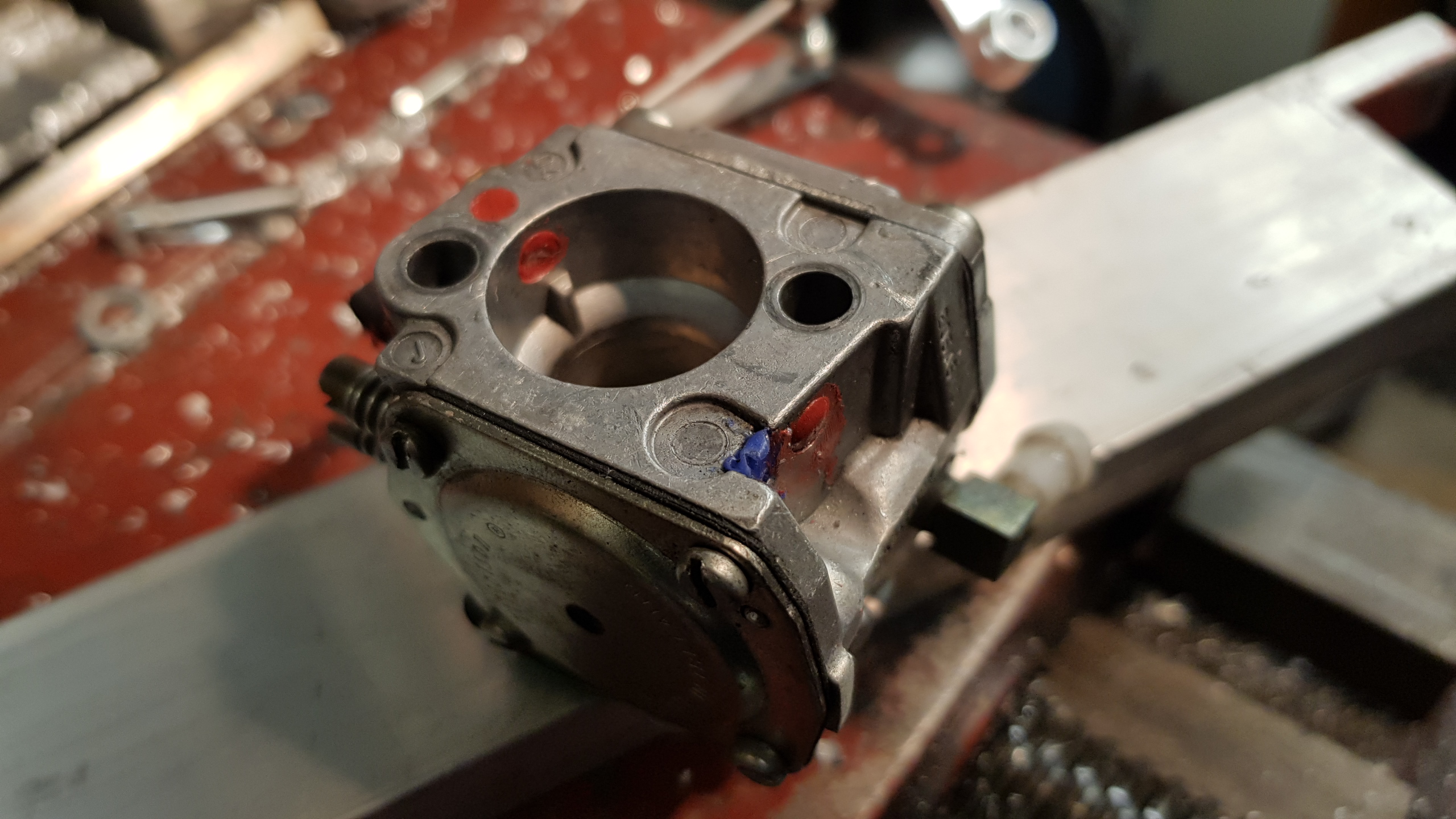 Fördelen med Tillotson förgasarna på Raket 85 är att den har samma hålbild som en vanlig 668 eller 990 men med större hål.
