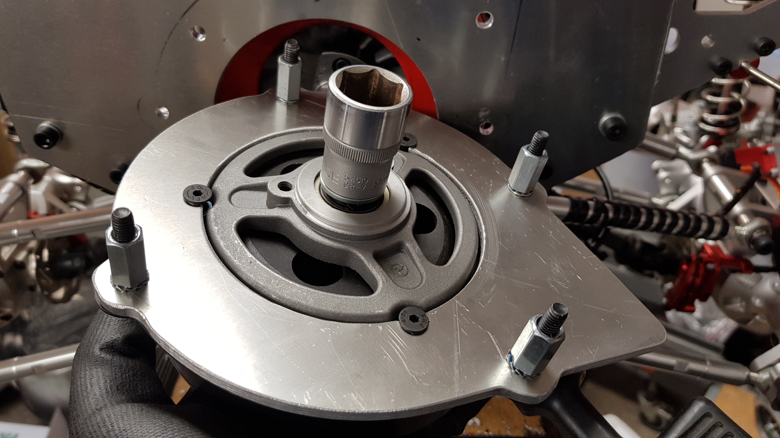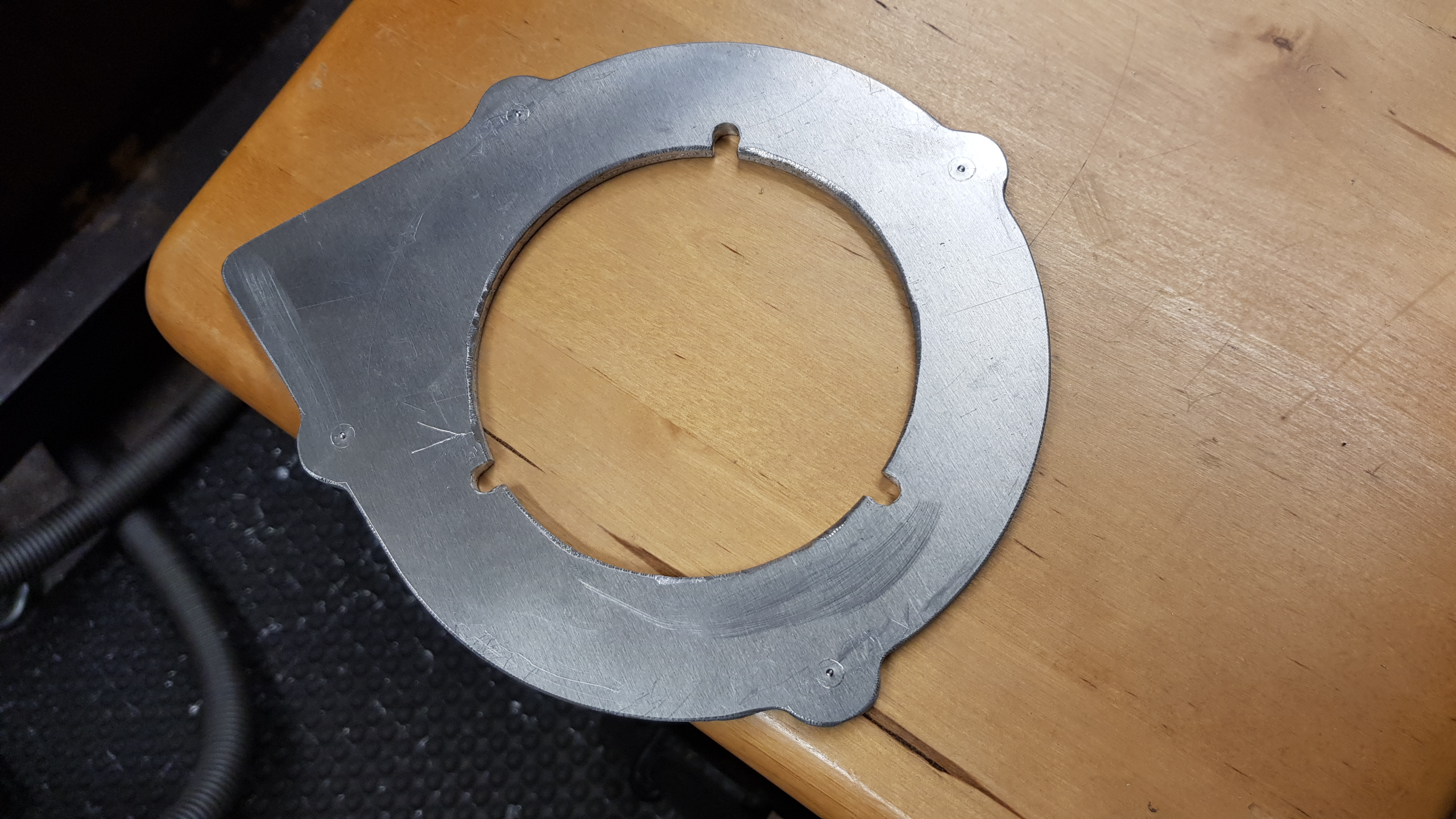 En stund i rundmatningsbordet till fräsen och vips hade man adapterplattan som förenar en ATV dragstart till en CF 500cc och en kopplingshållare till en kines-goped.