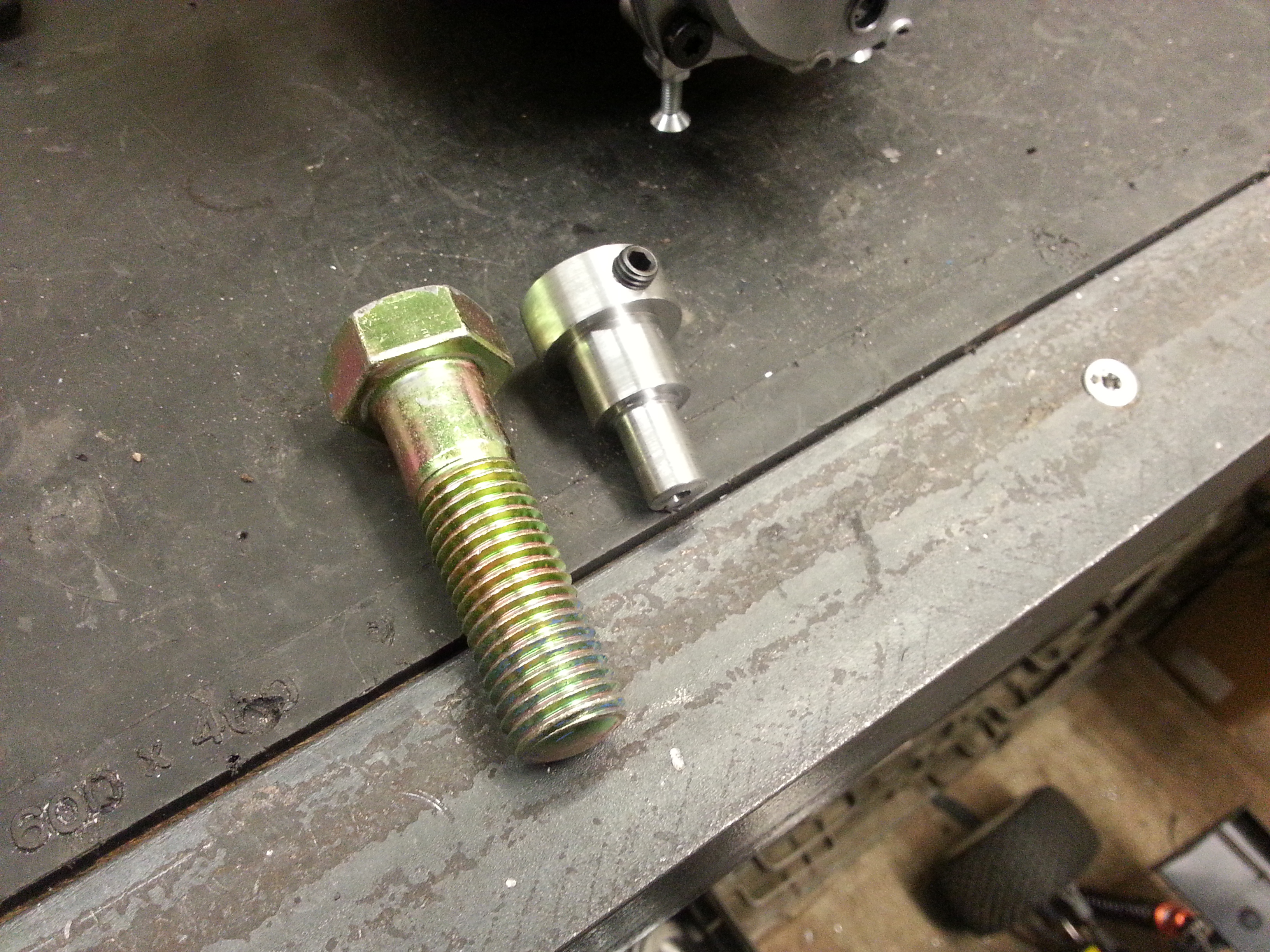 Nu kan jag dra ihop adaptern med bänken med en riktig 12.9 bult med M8 storlek.