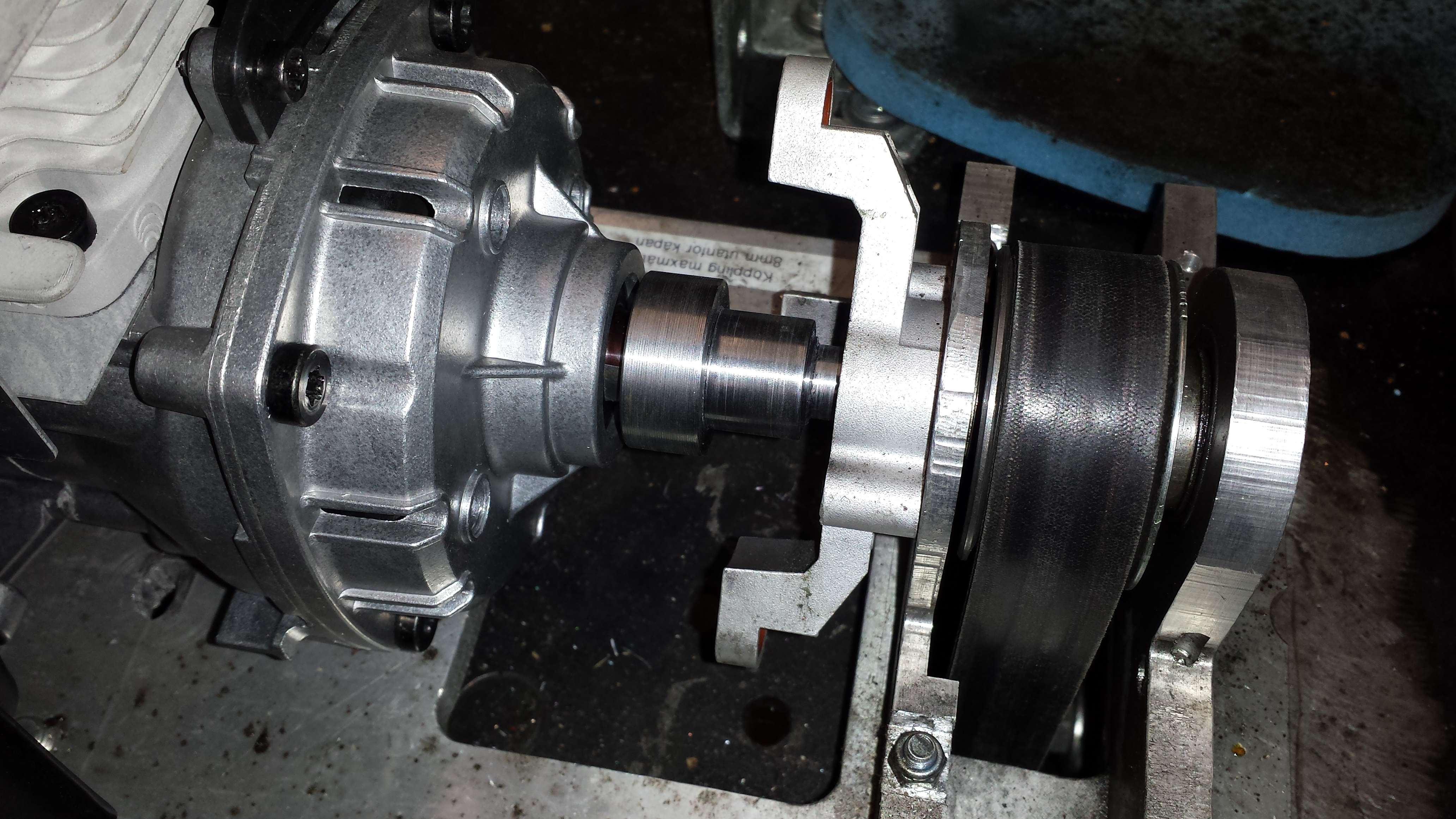 Har svarvat en ny innerhylsa till remskivan på bänken och fixat en klocka med M8 gänga istället.