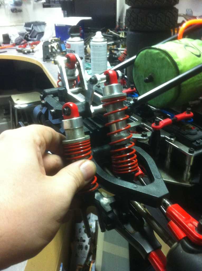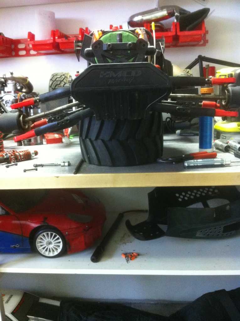 Men givetvis så kan man ju inte låta bli att "förbättra" bilens taskiga främre fjädringsväg med ett hemmagjort longtravel kit med snodda dämpare från min baja 1000 o lite 7075-T6 alu från lokala mekaniska verstan , som lyckligtvis jobbade extra i helgen så jag kunde hämta matreal i morse.