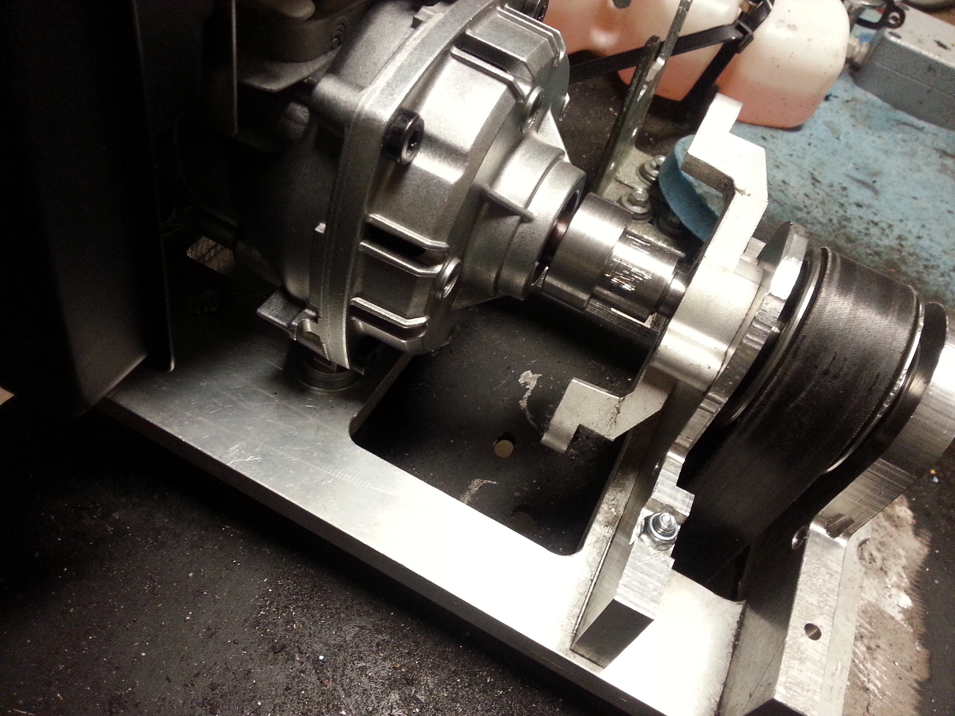 Har fixat till övergången och har svarvat en distans mellan remskivan och lagerbocken för att förhindra att den kan vandra.