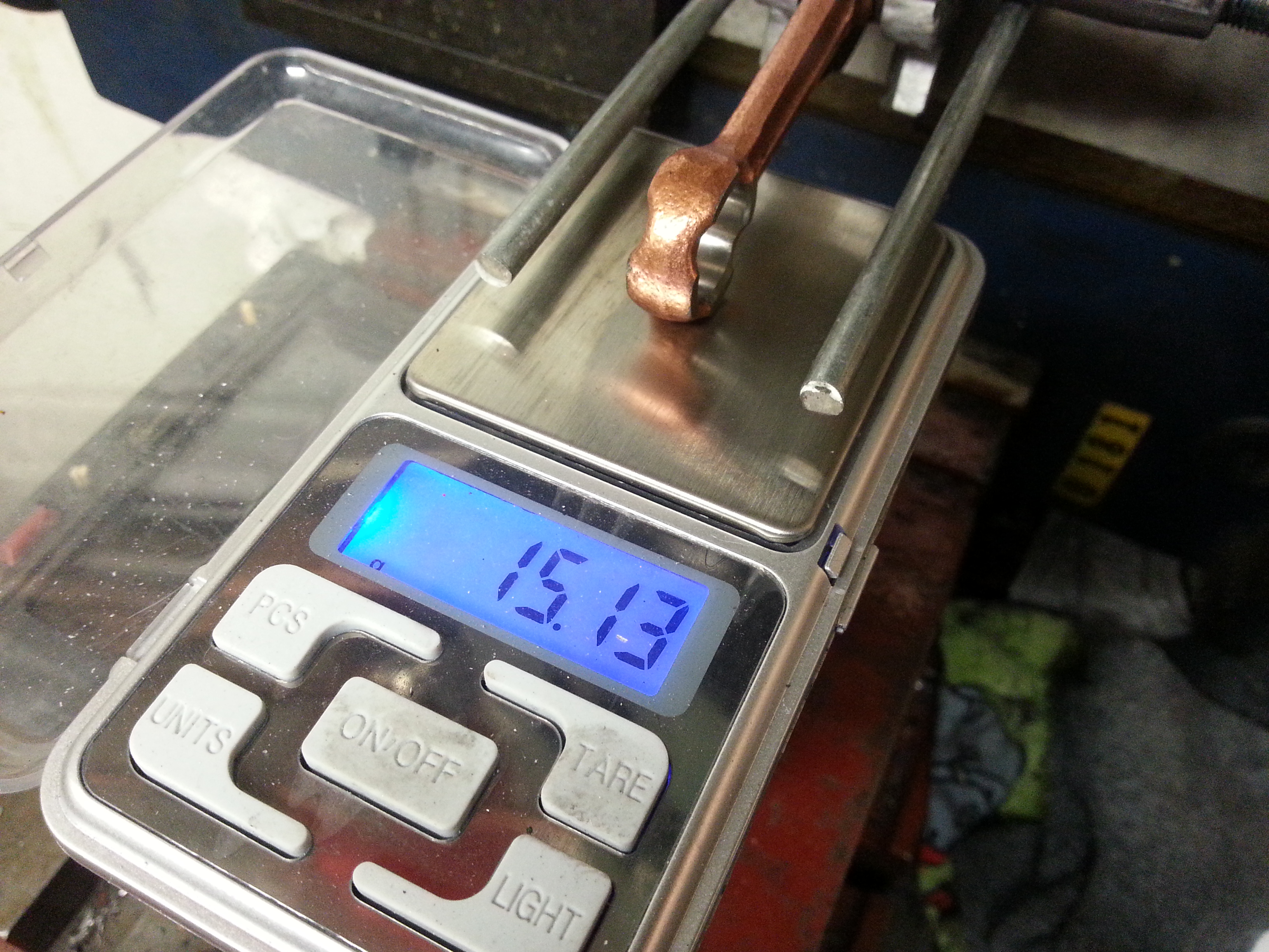 Gick från 81,5g till 76g på totalvikten och från 63,9g till 50,5g med motvikten.....