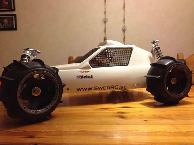 . Jag ville bara uppdatera buggyn lite grann så jag tänkte bygga en fräck sandloppa. Så lite hjul togs hem och Marder karossen sänktes ner för tuffare look. Så här såg det ut då. (se bilder)