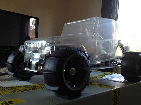 MEN detta spårade ur såklart och jag tänkte att en bil med såna här hjul ska ju vara en formula offroad jeep..... Bestämt!! En sån ska det bli. Så nu byggs det på en Jeep Wrangler kaross från FG..