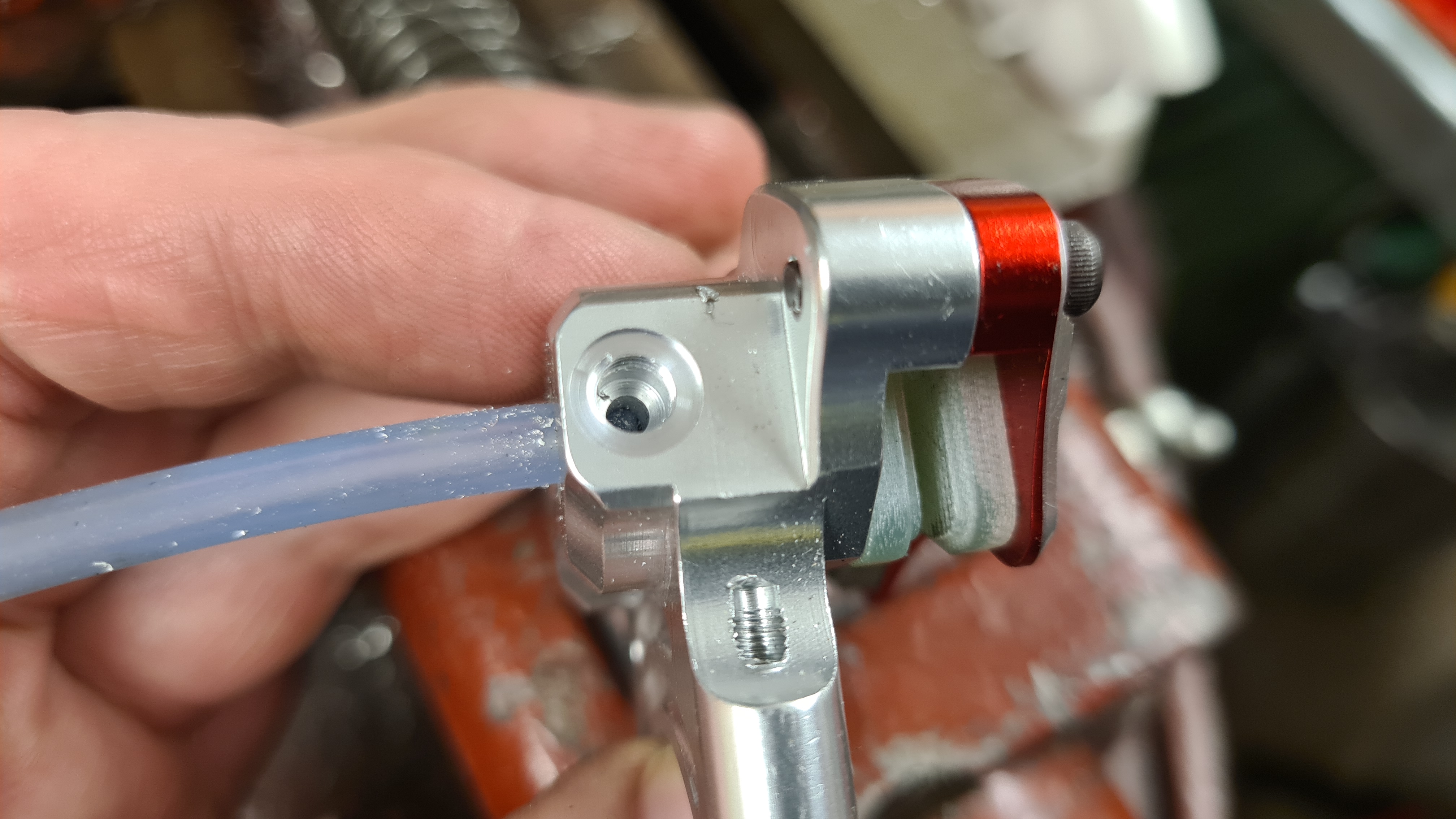 Med bromssystemet fyllt kan jag bara tacka min lyckliga stjärna att jag borrade och gängade i en ny luftning i det främre oket, för det visade sig vara ordentligt besvärligt.