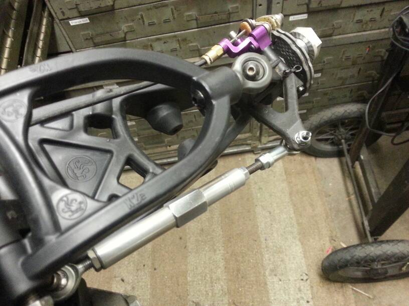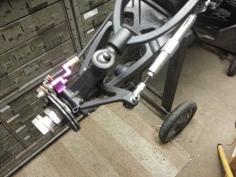 Kan konstatera att de nedre länkarmarna fram behöver moddas en del runt kulleden för att gå fria i styrspindeln.