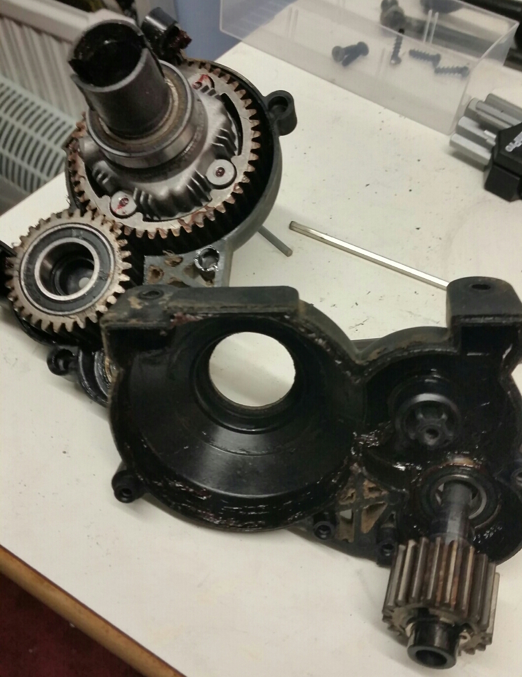 Renoverat diffen bak bytt alla kullager samt nya oringar dom gamla hade mer eller mindre löst upp även slipat in spelet på klockan, bakvagnen även den så gott som klar imorgon sätts de sista ihop sen blir det provkörning av rovan och inkörning av losi