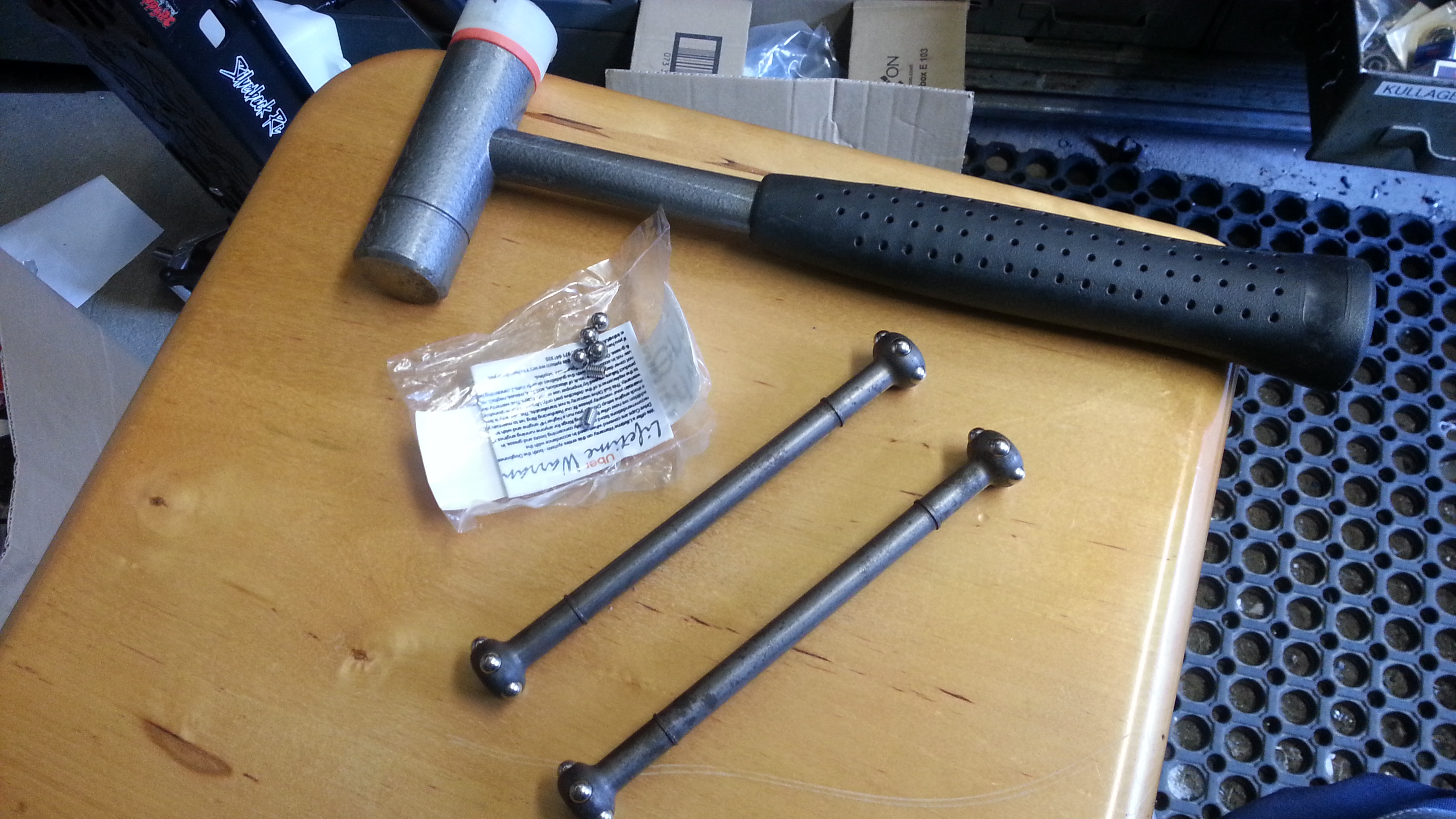 Någon skillnad i tillverkningen måste dom ha gjort mot de jag monterade på Stefans bil för där fick jag använda en press för att få i kulorna.