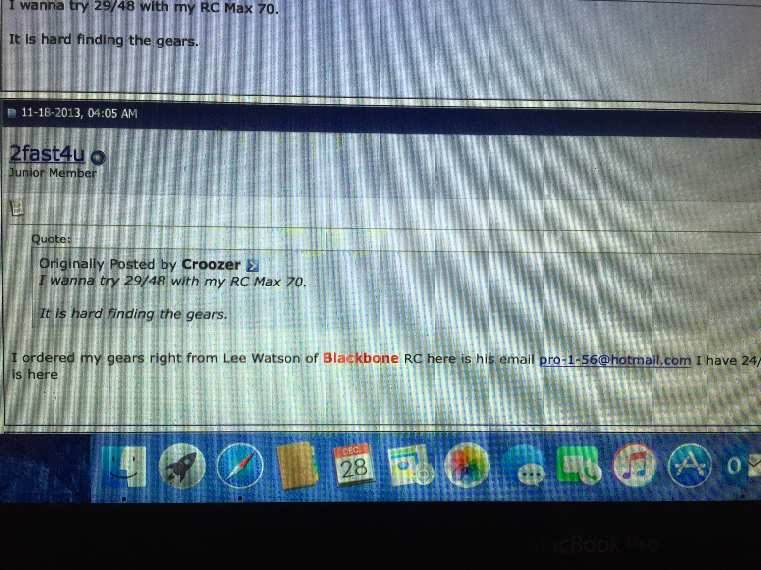Skall kolla med Nige på Freeprawn och se vad han har att säga.... MMR vägrar jag att ens kontakta även om ärkeidioten Saj på MMR sa att han kunde ordna de flesta av dreven ifrån Blackbone.... Jag ber hellre en ingenjör att konstruera och tillverka egna drev till mig än att han ska få sälja så mycket som en bricka till mig...