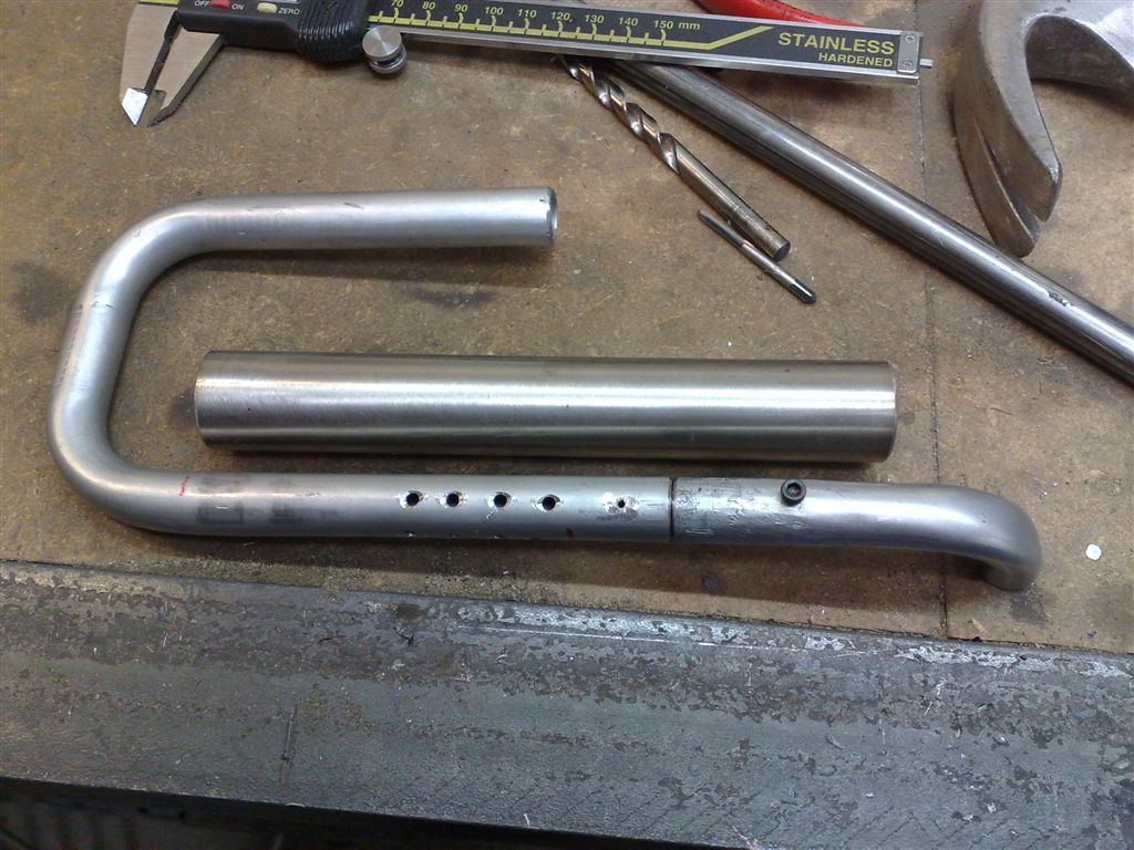 Ett stålrör perforeras med små hål och pluggas mitt emellan två grupper av hål som motsvarar 10 kvadratmm