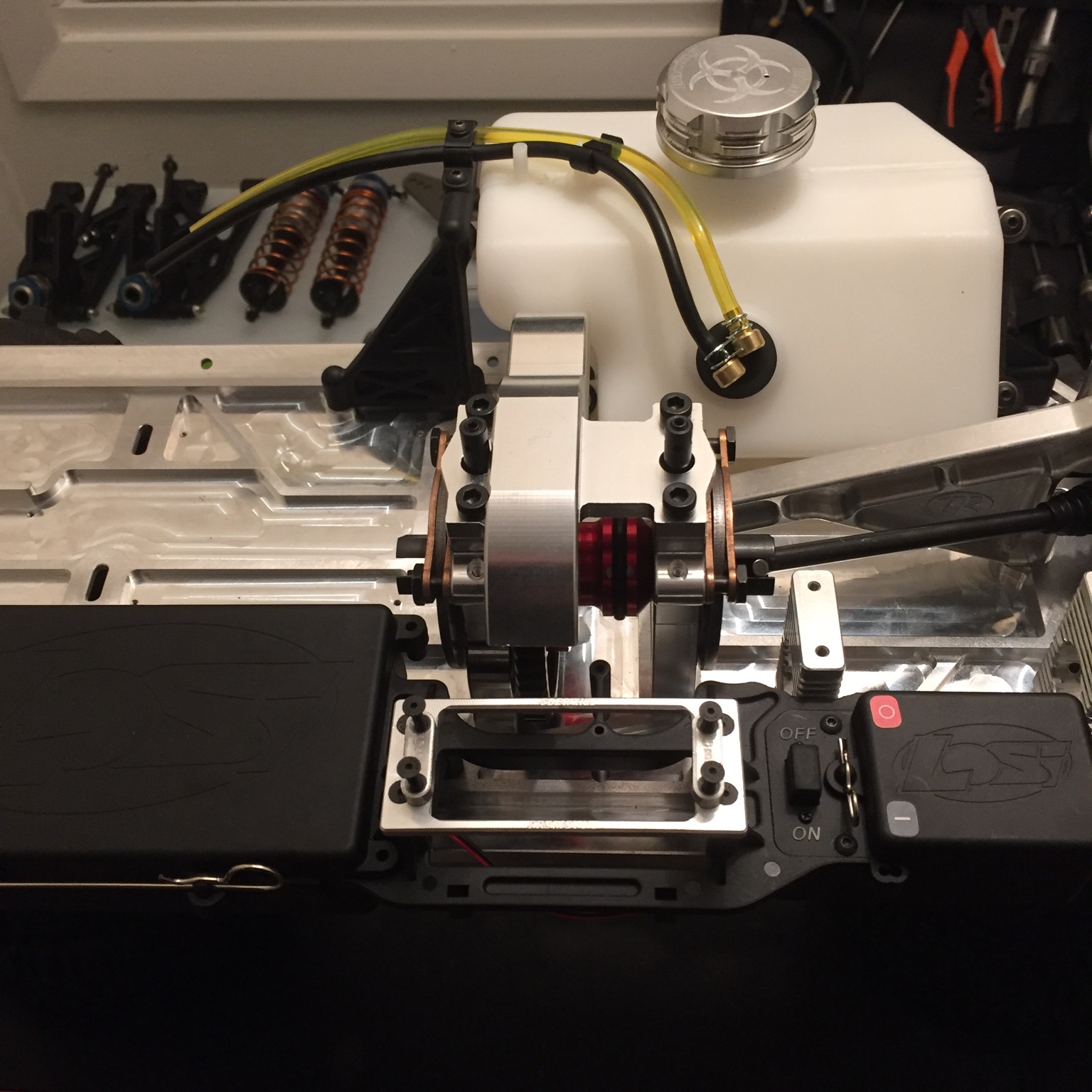 Montering av tank samt provmontering av radioplatta, som dock kommer att "kolfibermodifieras" en aning innan den sätts på plats permanent....