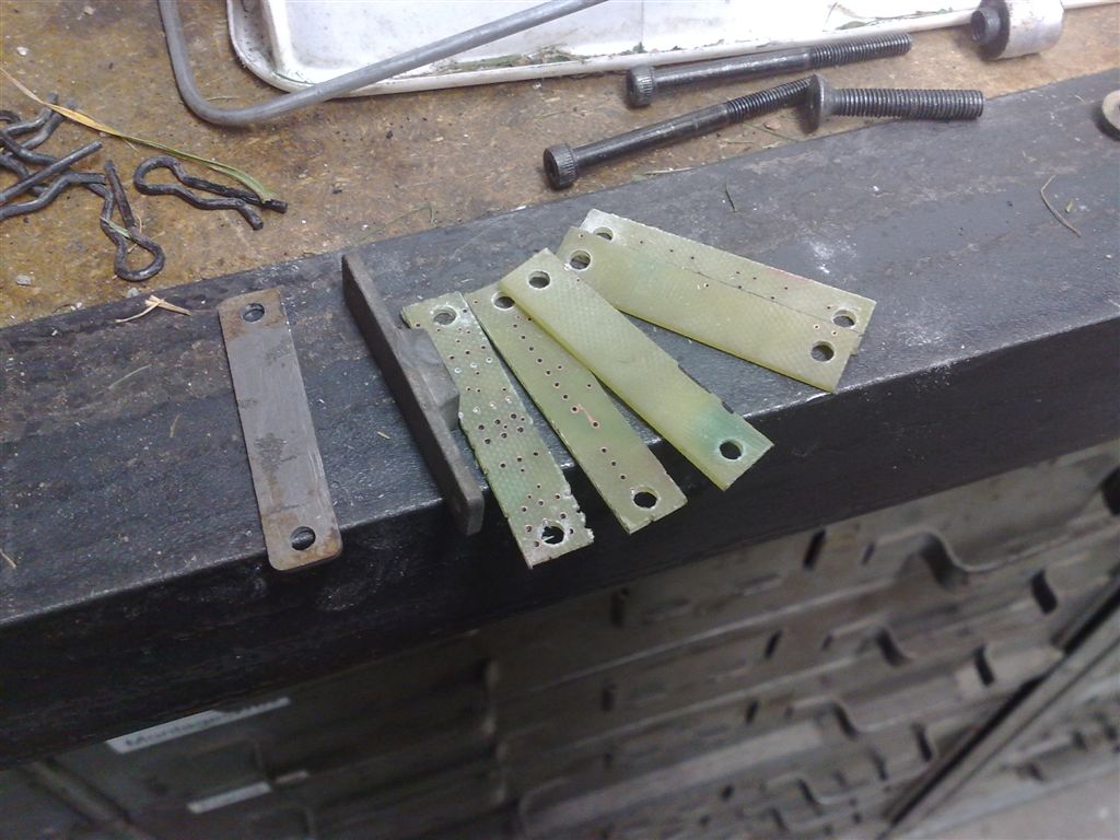 Vill inte fundera mer på om pinnarna försvinner eller om jag sliter ut beläggen igen, så jag gjorde en modd med långa M3 insexskruvar som jag försänkte in i hållaren, tillverkade nya belägg och slipade rent metallbitarna från det lilla som var kvar av bromsbeläggen.