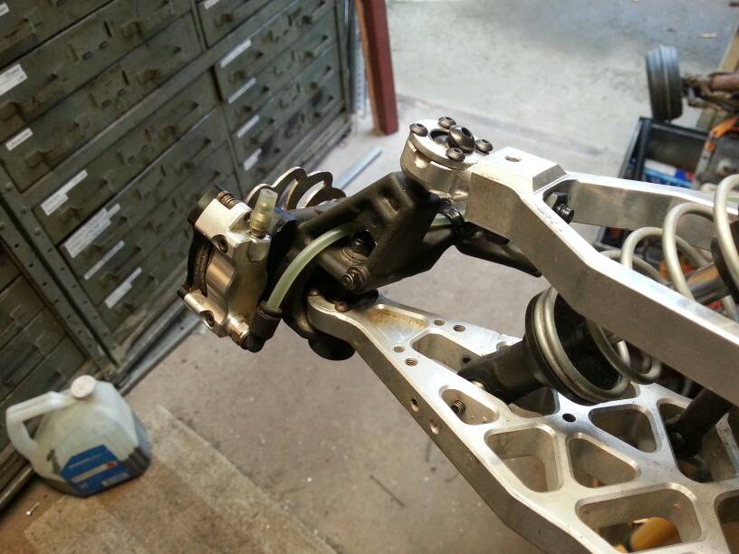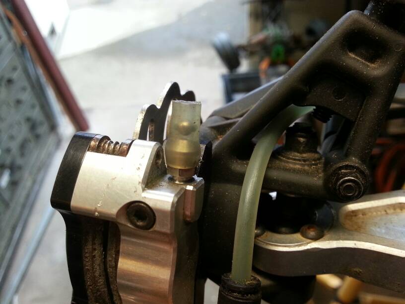 Hittade inga bra gummihattar att sätta på luftningsnipplarna så jag tog bara en bit bränsleslang och tryckte i en kula från ett kullager.