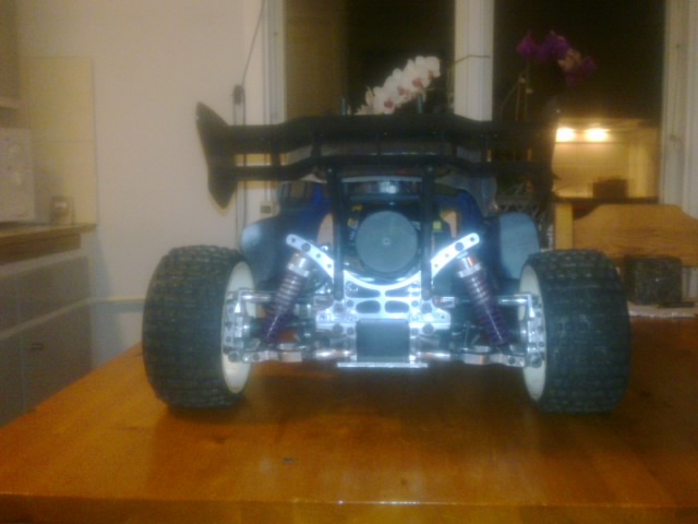 Jag har idag fixat till 1,5 cm mer fjädringsväg bak och förlängt dämparna med ca 1cm så nu har jag ca 6cm fjädringsväg totalt, så nu ska jag fixa något för att få detsamma fram ochså.. Med detta kan jag få lite "ride in" (tror jag det kallas) och då borde den bli mindre studsig.. Måste lyckas hitta något mjukare fjädrar bara. Har en massa ideèr som ska prövas.. FG är ju lite stela i sitt uppförande och kort fjädringsväg original..
