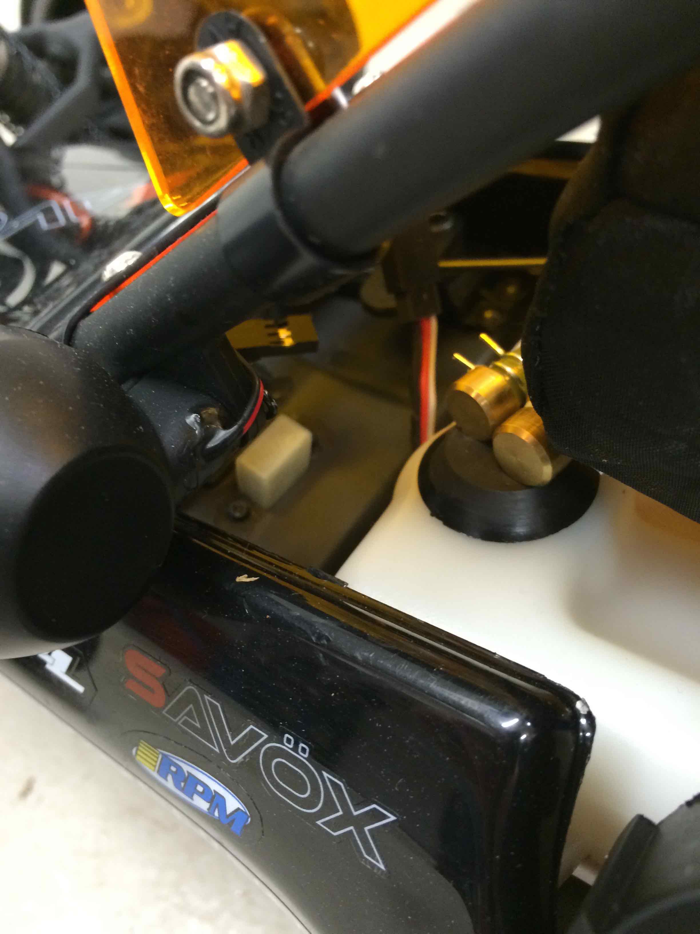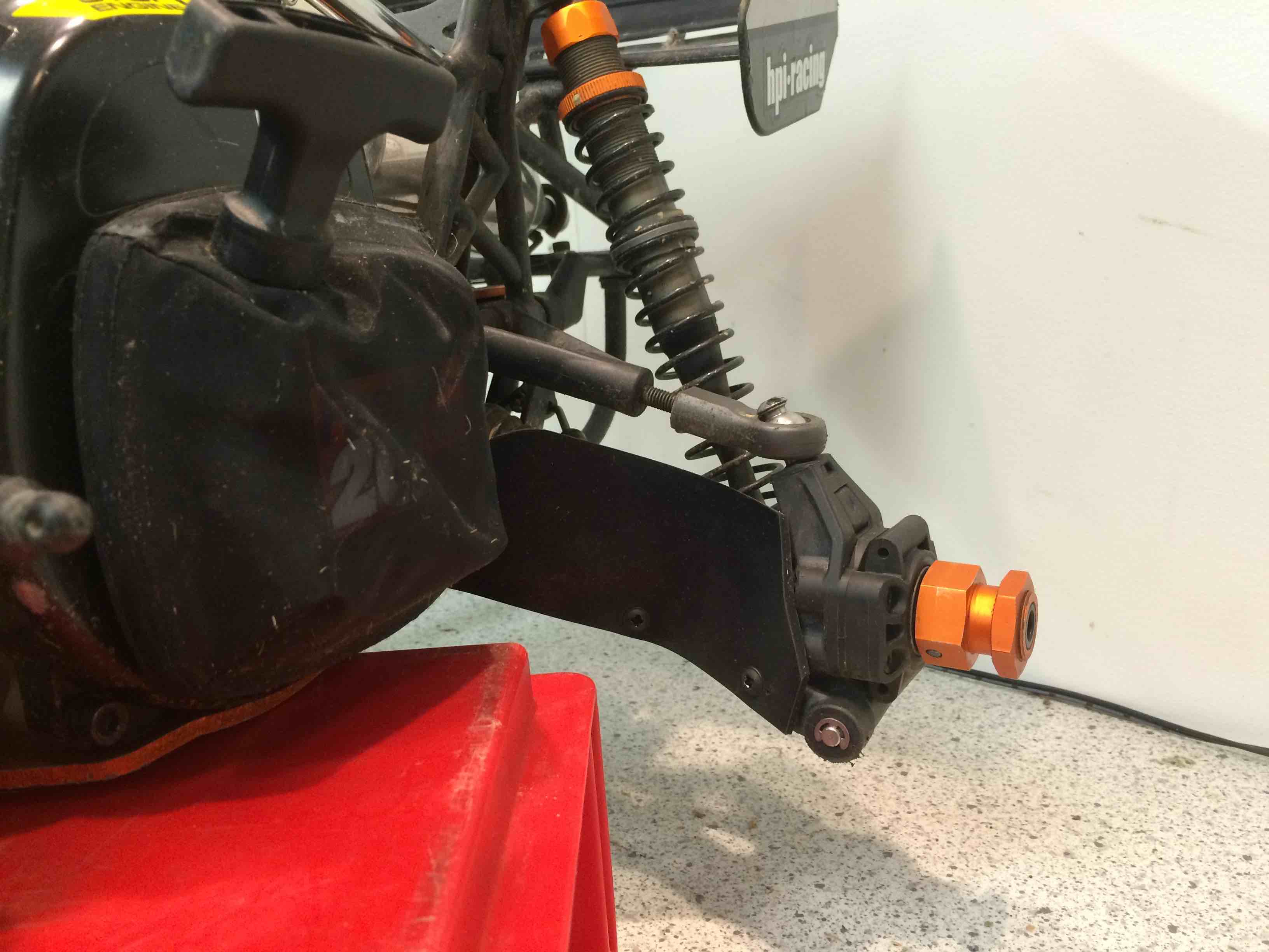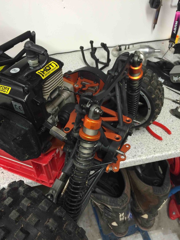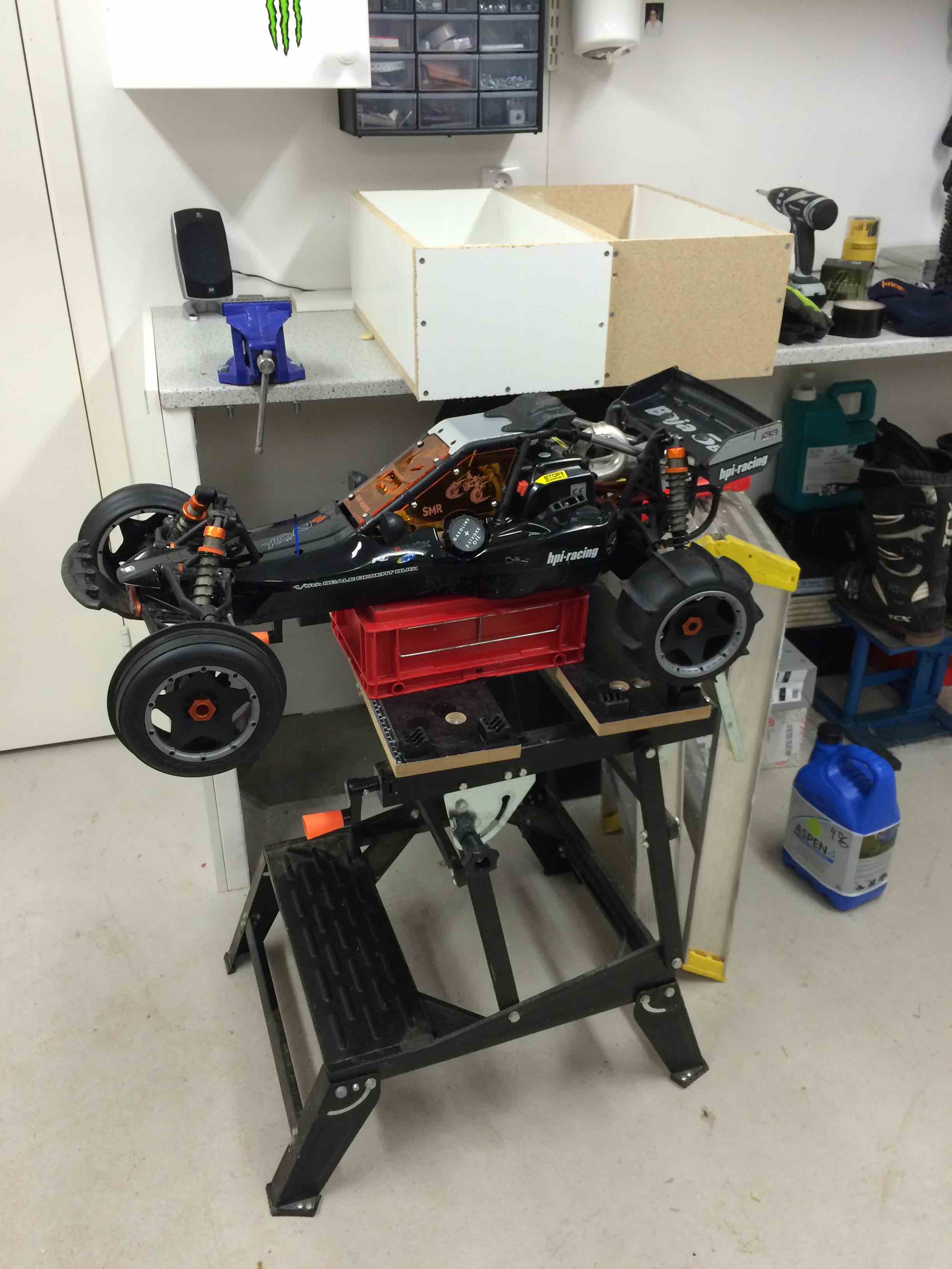 Det som är uppgraderat nu är styrservo, killswitch, sluten koppling och drivaxeldamaskskydd m.m. Annars så gott som original. Just det, labbar lite med gyro till styrningen, får se om det kan fungera...