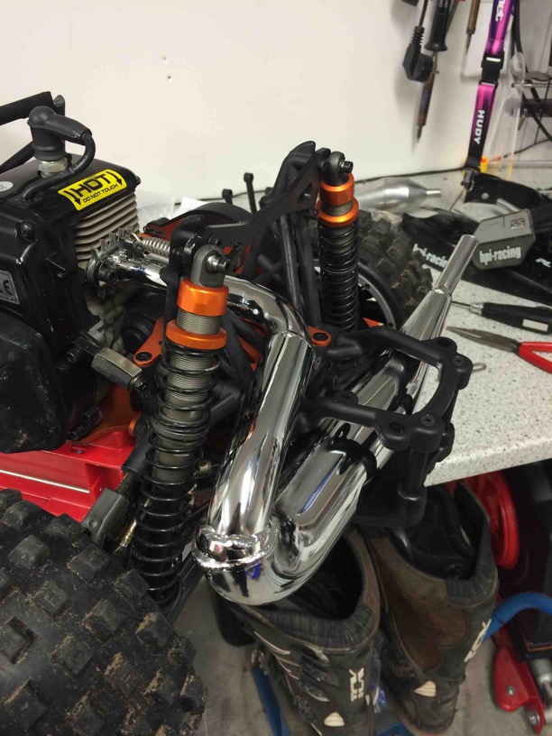 Dominator v2 och RPM bakbumper sitter nu på. Pipan ligger väldigt nära krysstagen från stötdämparturnet, det som går mot mitten på bilen. Skall man byta dessa mot alu eller annat mtrl?