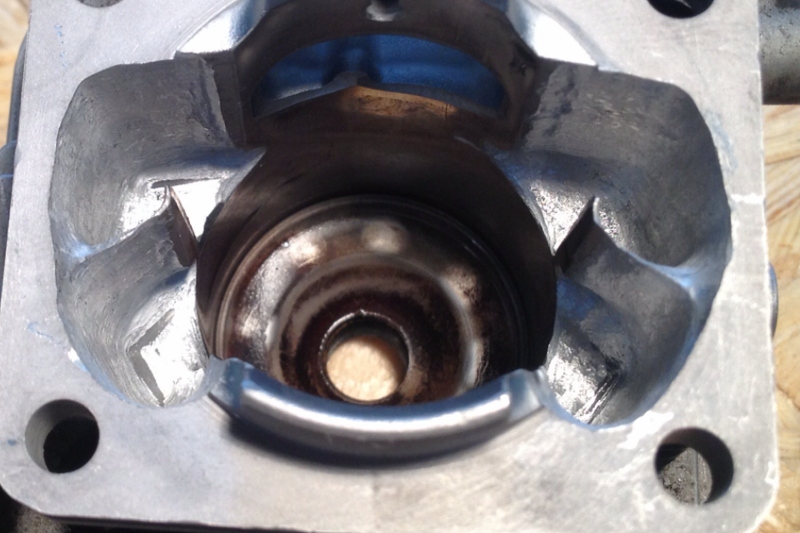 Efter detta tätades ett hål i Samba7:an, och jag justerade formen på kanalerna en aning, och bättrade på ytan mellan cylinder och fläns (som jag spänner ner den 2-bultade cylindern med).