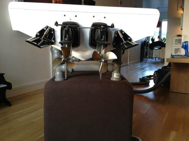 jag skulle placera ut allt som ska sitta i båten på "rätta ställena" typ radiolåda, servon, batterier, pipor, motor med fästen och dreven osv.