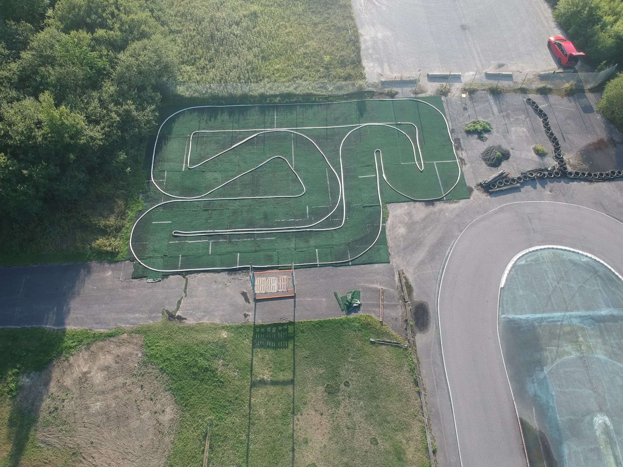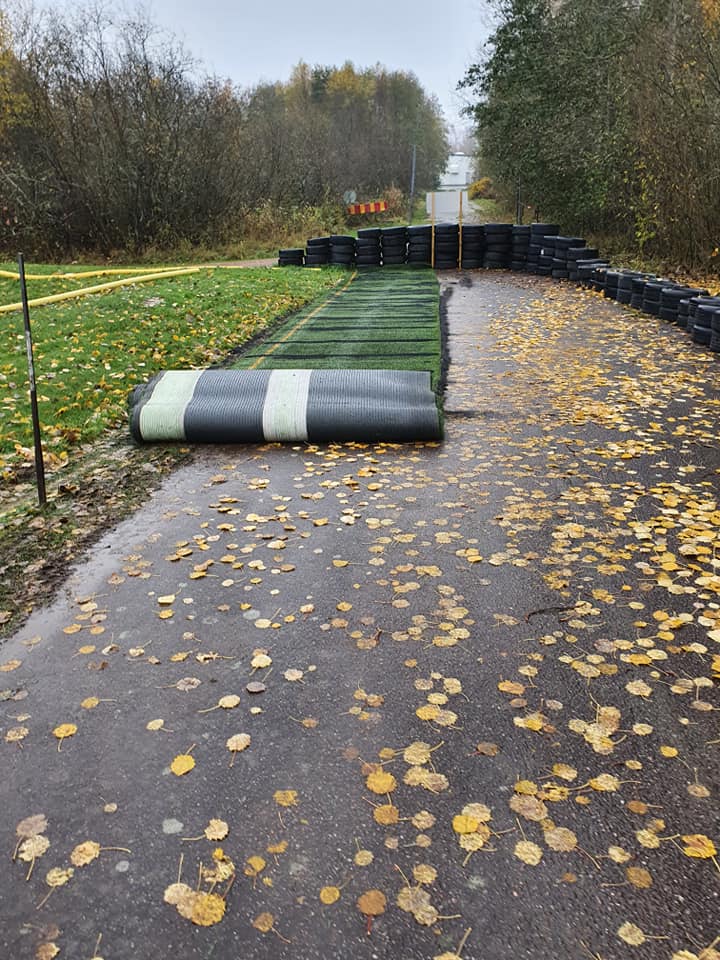 Fått till en plattå o h en upphöjd 120graders sväng typ. Mer konstgräs. Lite sten och trall att köra på.