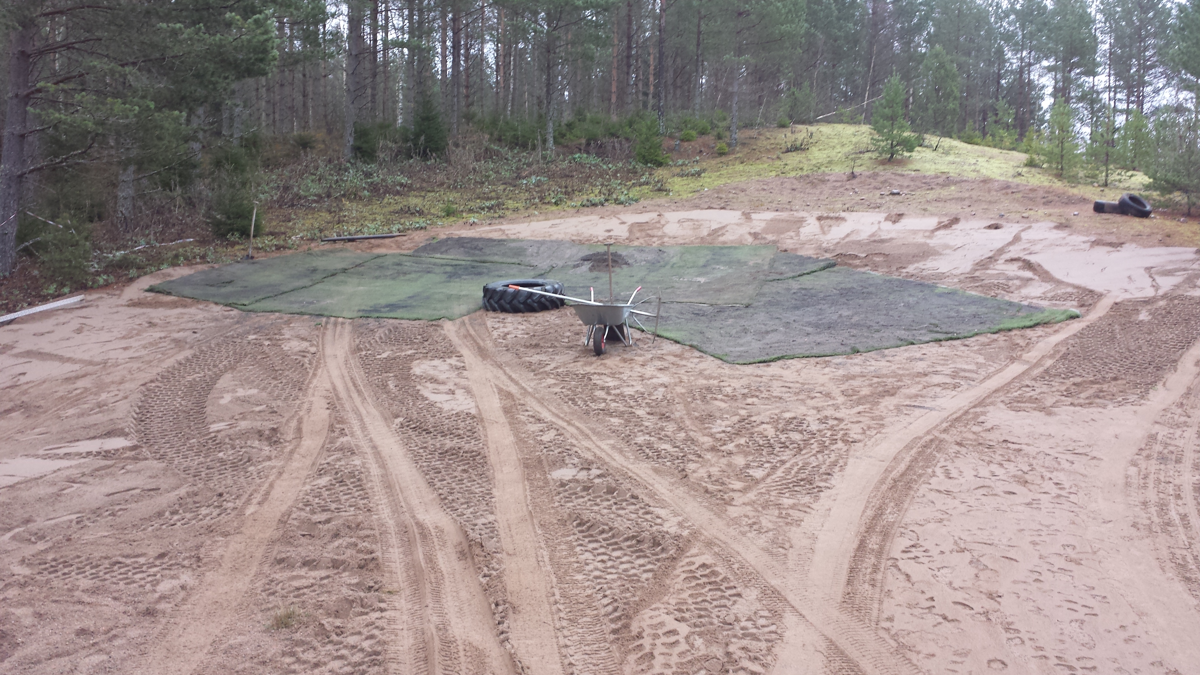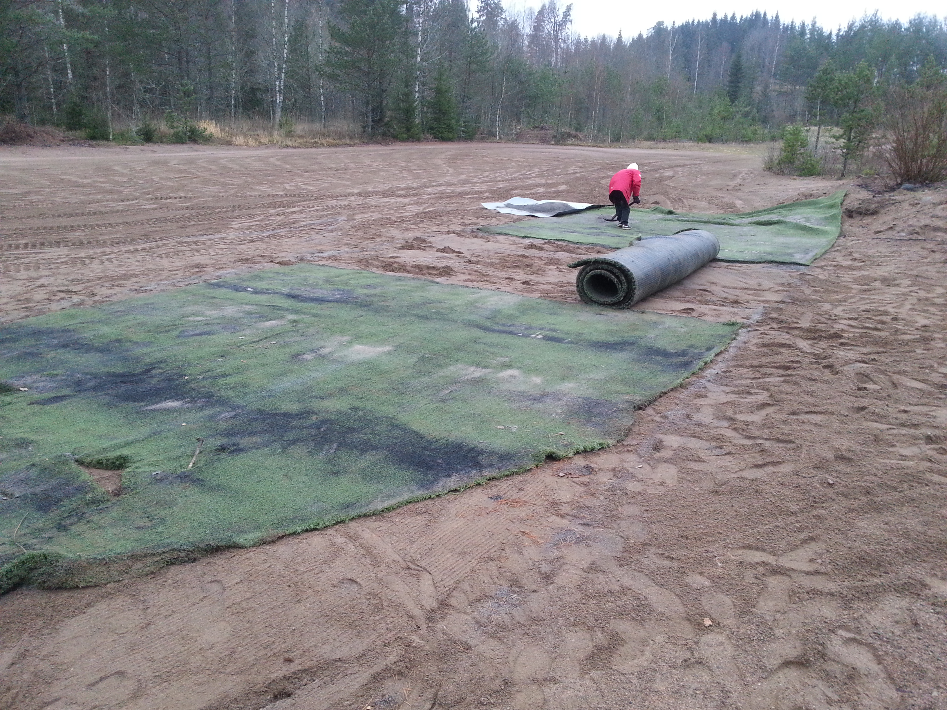 Mörkt och blött, men nu är mattan på plats!