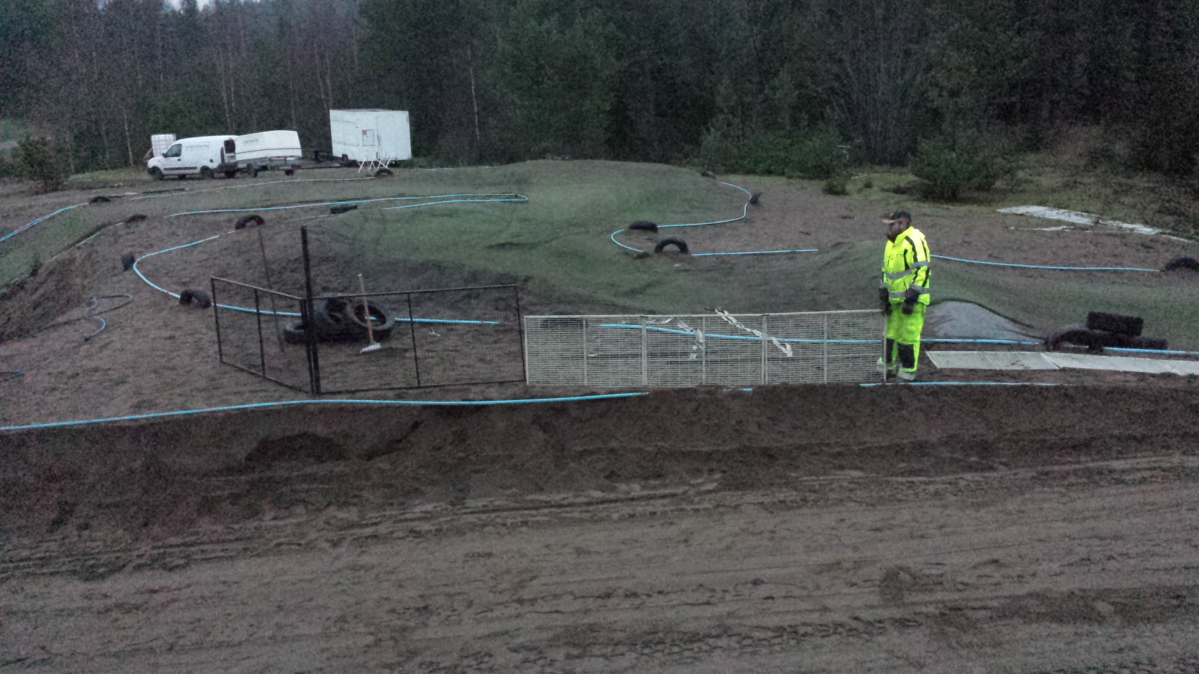 Har också fått till ett staket mellan startrakan och S-kurvan innan dubbelhoppet!