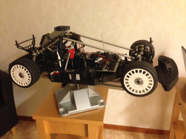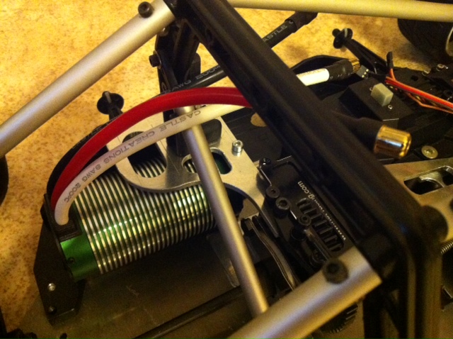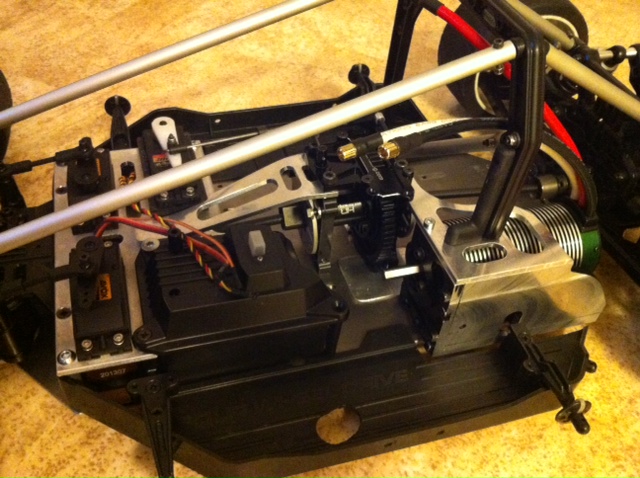 Har byggt nyplatta för servo, förstärkning för centerdiff o motorfäste, o flyttat upp bromsservot så att bromsstaget hamnar i en ganska rak linje.