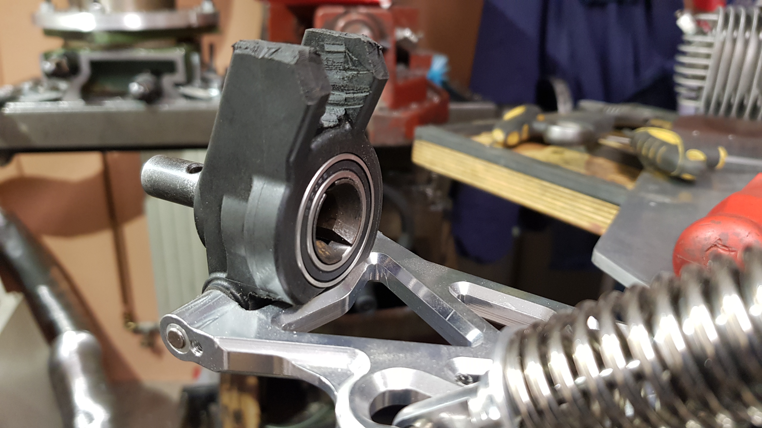 Det kvittade hur jag modifierade och kapade i gummit i axelkopplingen så blev den för hård för att göra nån nytta.