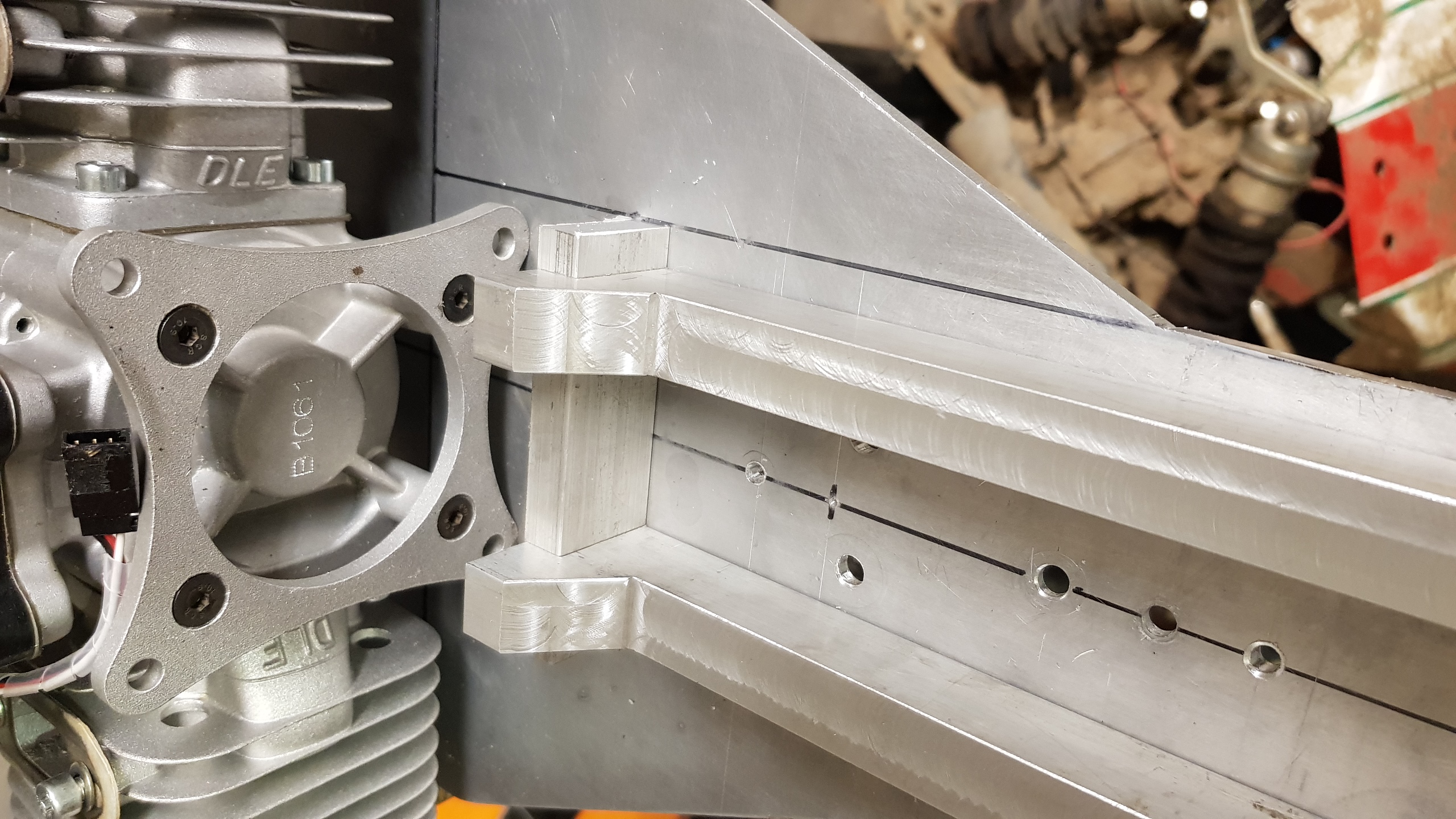 Tillverkade ett kombinerat distanstorn och motorfäste i ett.