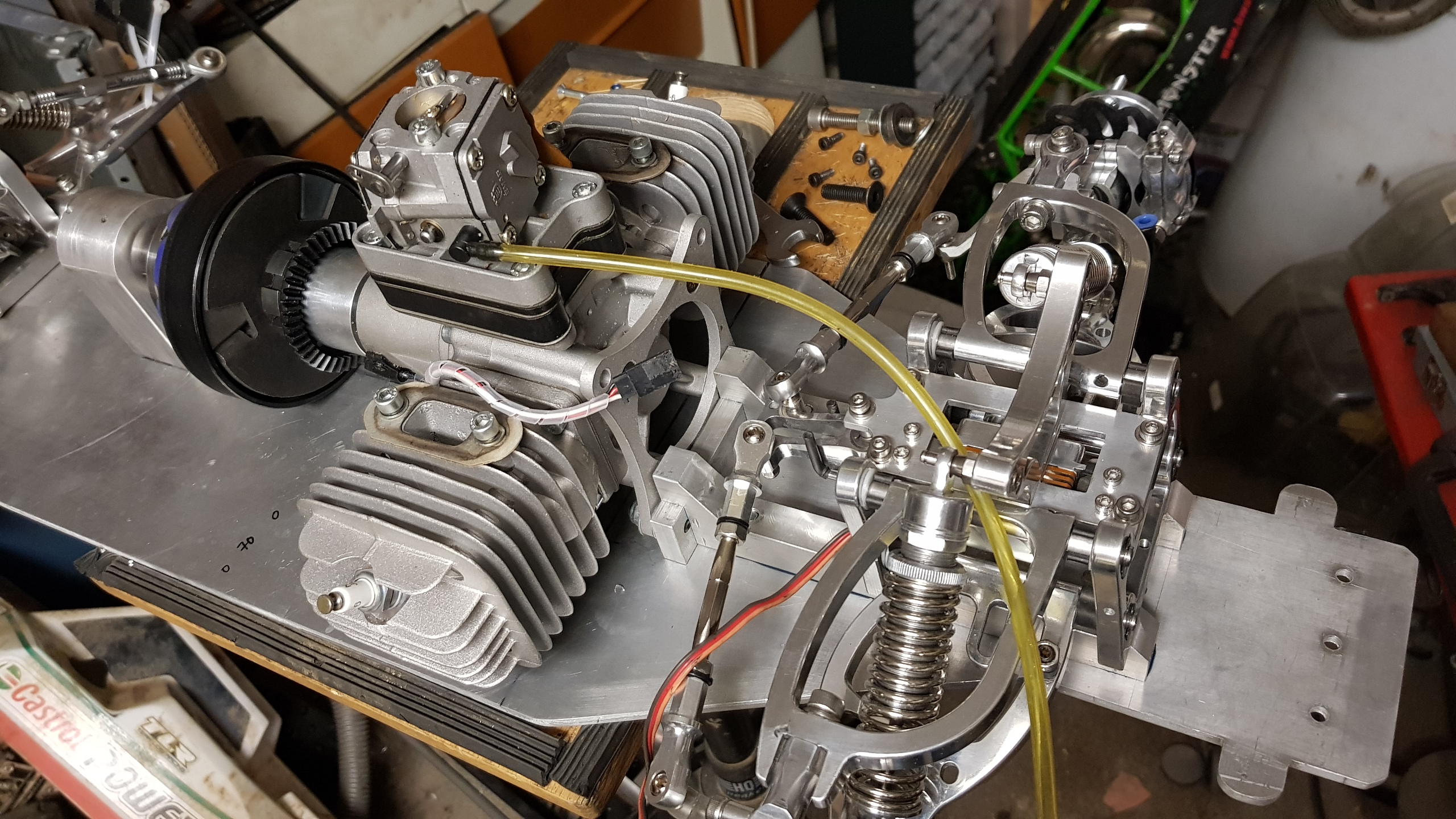 Vägde motorn med koppling och bakre lagerbocken ihop och hela paketet väger exakt 5000g.