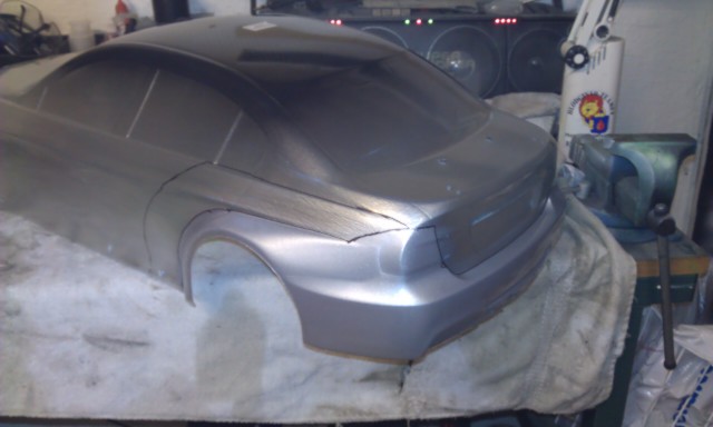 Ikväll har jag börjat att lacka karossen. Det samma stil som förra året,grön,silver,vit och kolfibertak.