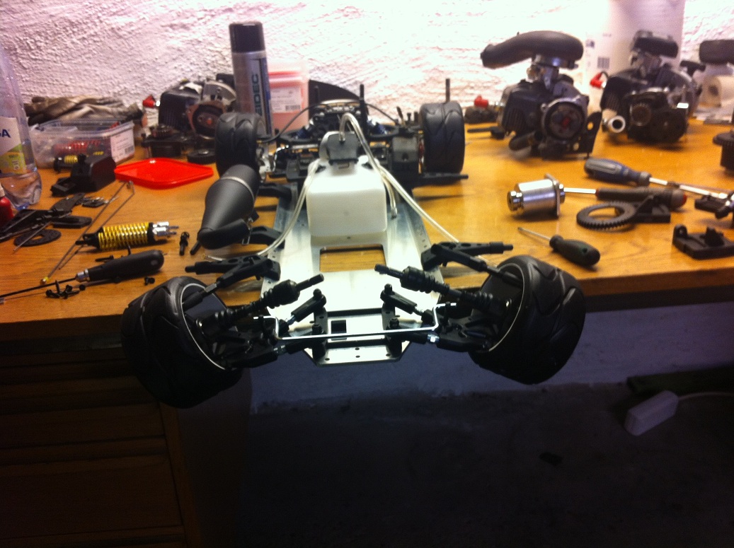 Nu är framvagnen helt färdig, med aluspindlar och tuningbroms, servona har också trillat på plats