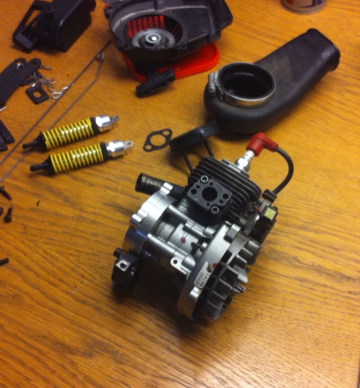 motor och bakvagn nermonterat Aludiff nyfettad och monterad Renovering av "gamla" motorn, en ordentlig tvätt, ny kolv, ring, nya kopplingsbackar, fjäder