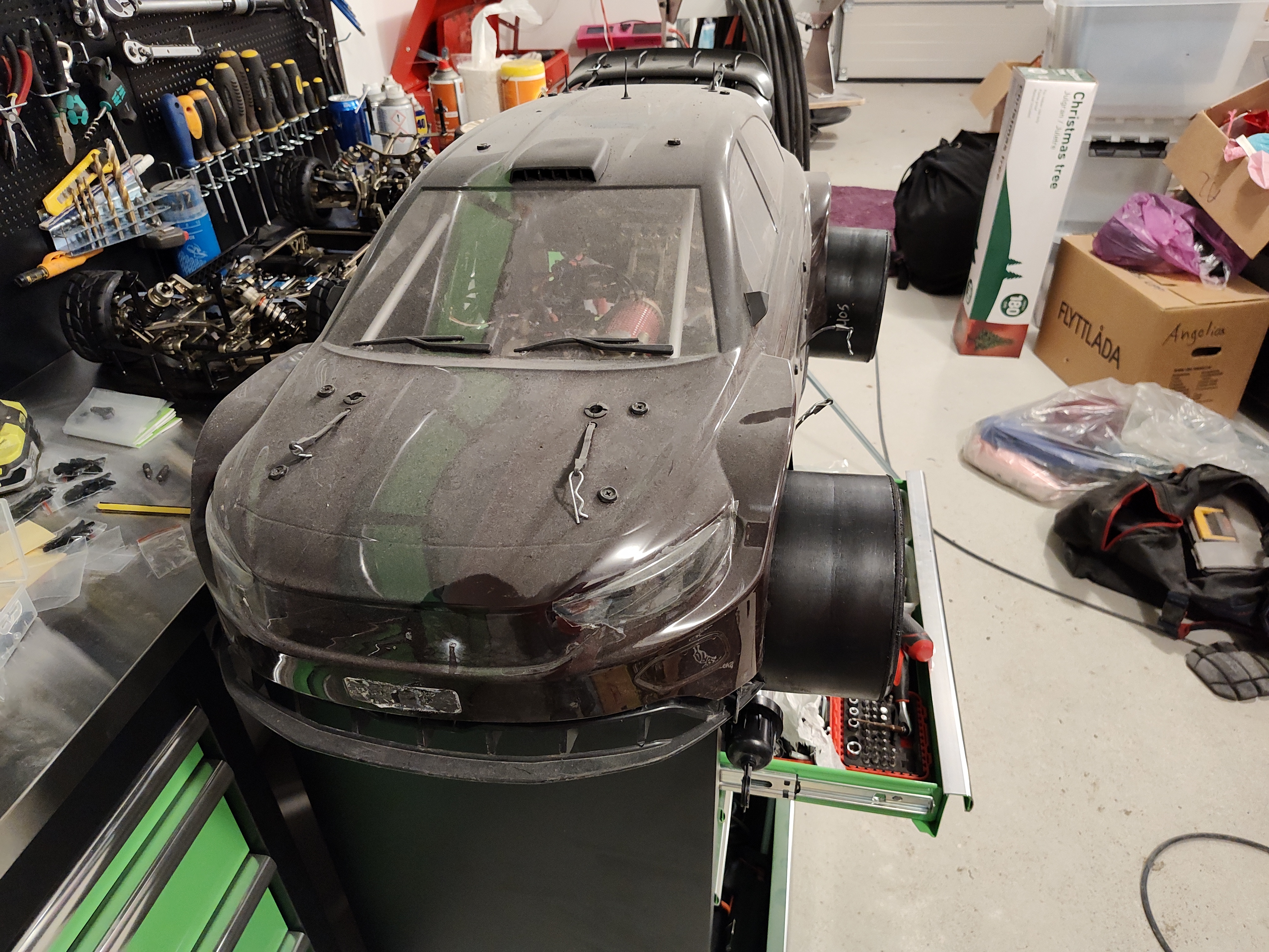 Köptes som en max pro, men sen bytade jag över allt alu godis från min rr5. Även xsnap hamnade i denna och savöx 0241 till styrning och 1210 (har jag för mig) till broms. Då denna blir renodlad xr5 och den andra blir renodlad xs5 så får denna även ärva en kaross med belysning och jag har även printat light pods i rallystil, som inte är helt klara (lödda led kvar). Det som håller denna tillbaka lite är esc som inte kommit än. Beställde castles xlx2 för 2 månader sedan men castle har svårt att leverera (mgm är för dyrt för att ha 2st i de 2 bilarna jag kör minst, ztw är jag på mitt andra och jag ville prova något nytt, som på pappret verkar nice med telemetri osv).